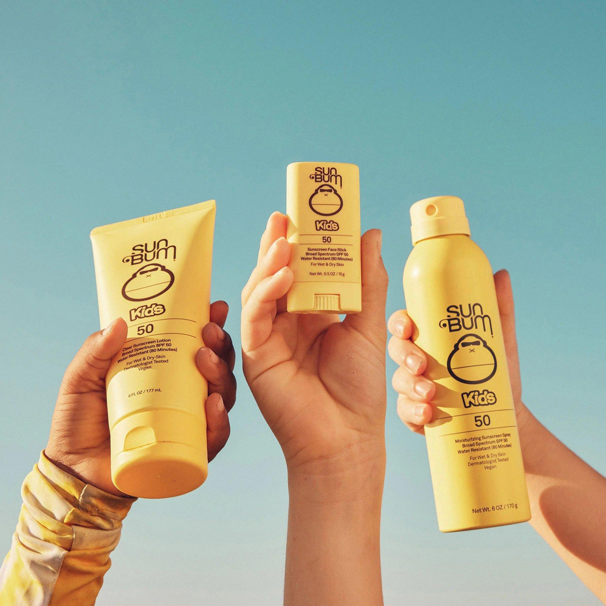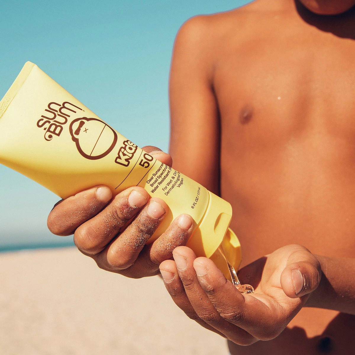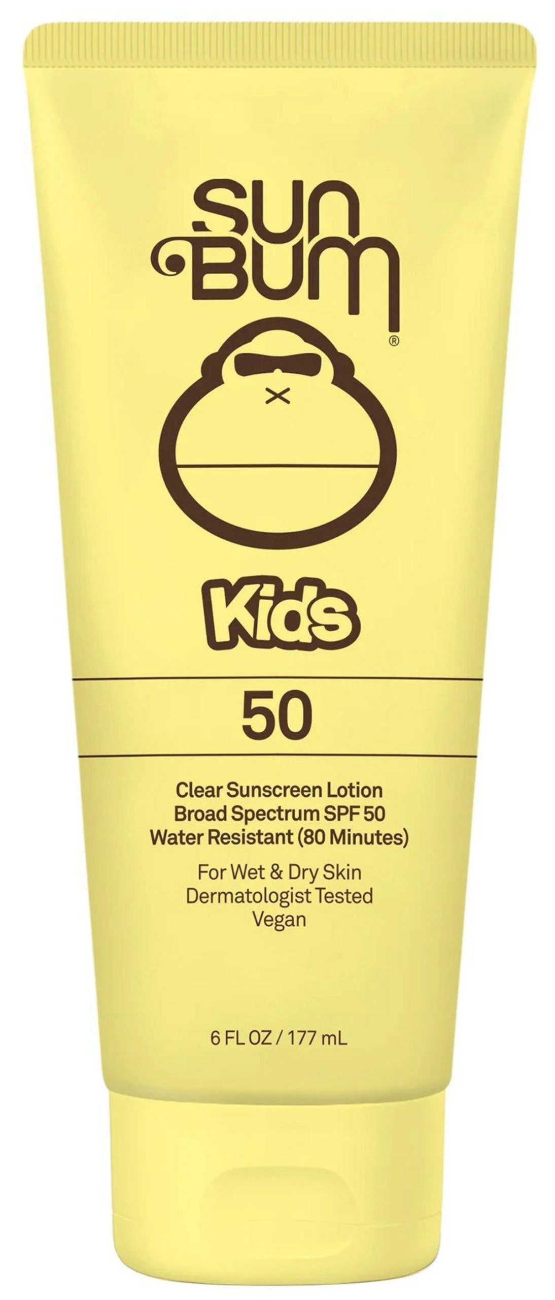 Our Kids SPF 50 Clear Sunscreen Lotion is a clear, water-resistant formula that can go on wet or dry skin to keep up with our most active kids.