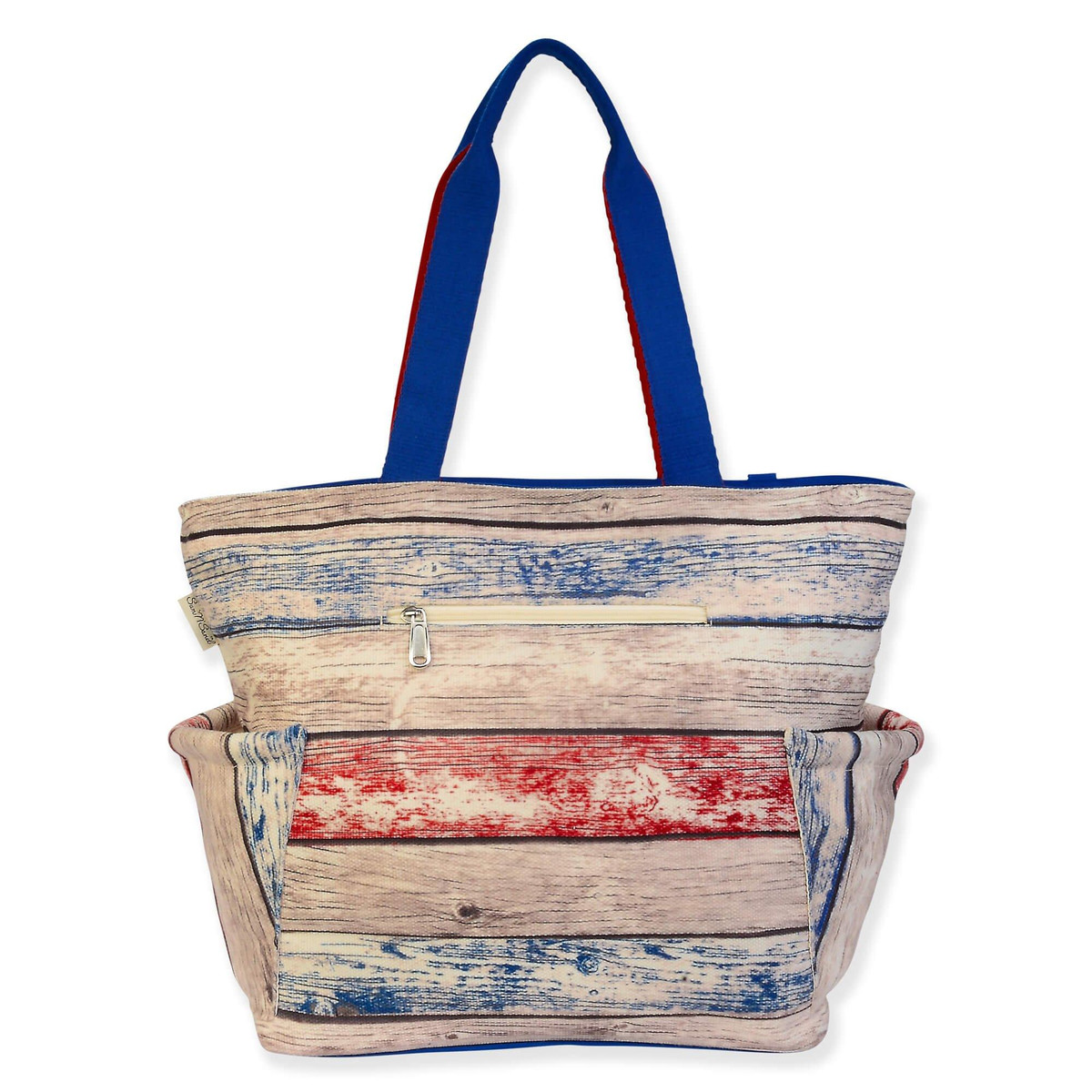 Introducing the Americana Oversized Flip Flop Crossbody Beach Tote Bag, crafted from sturdy canvas material and featuring a vibrant print. This stylish tote includes top handles, a top zip compartment with inner slip and zip pockets, side slip pockets, and a detachable zip pouch. It’s perfect for carrying all your beach essentials in style.