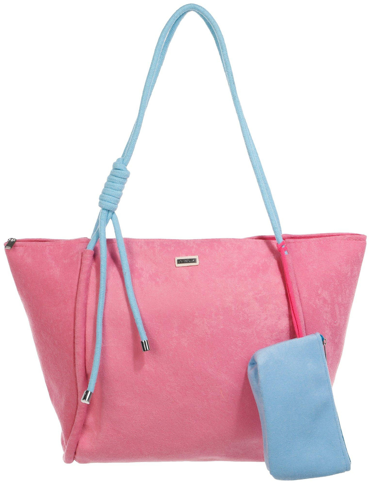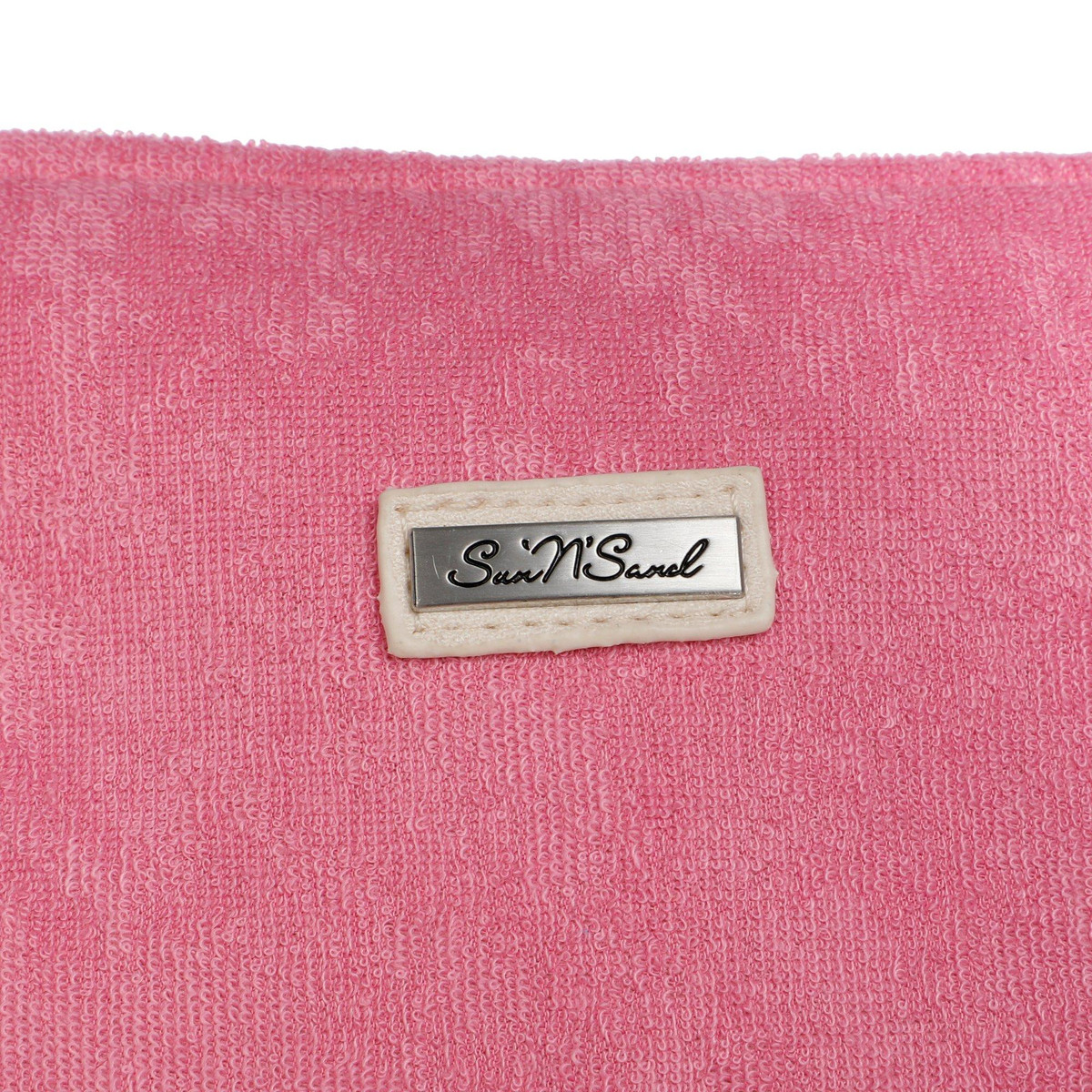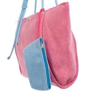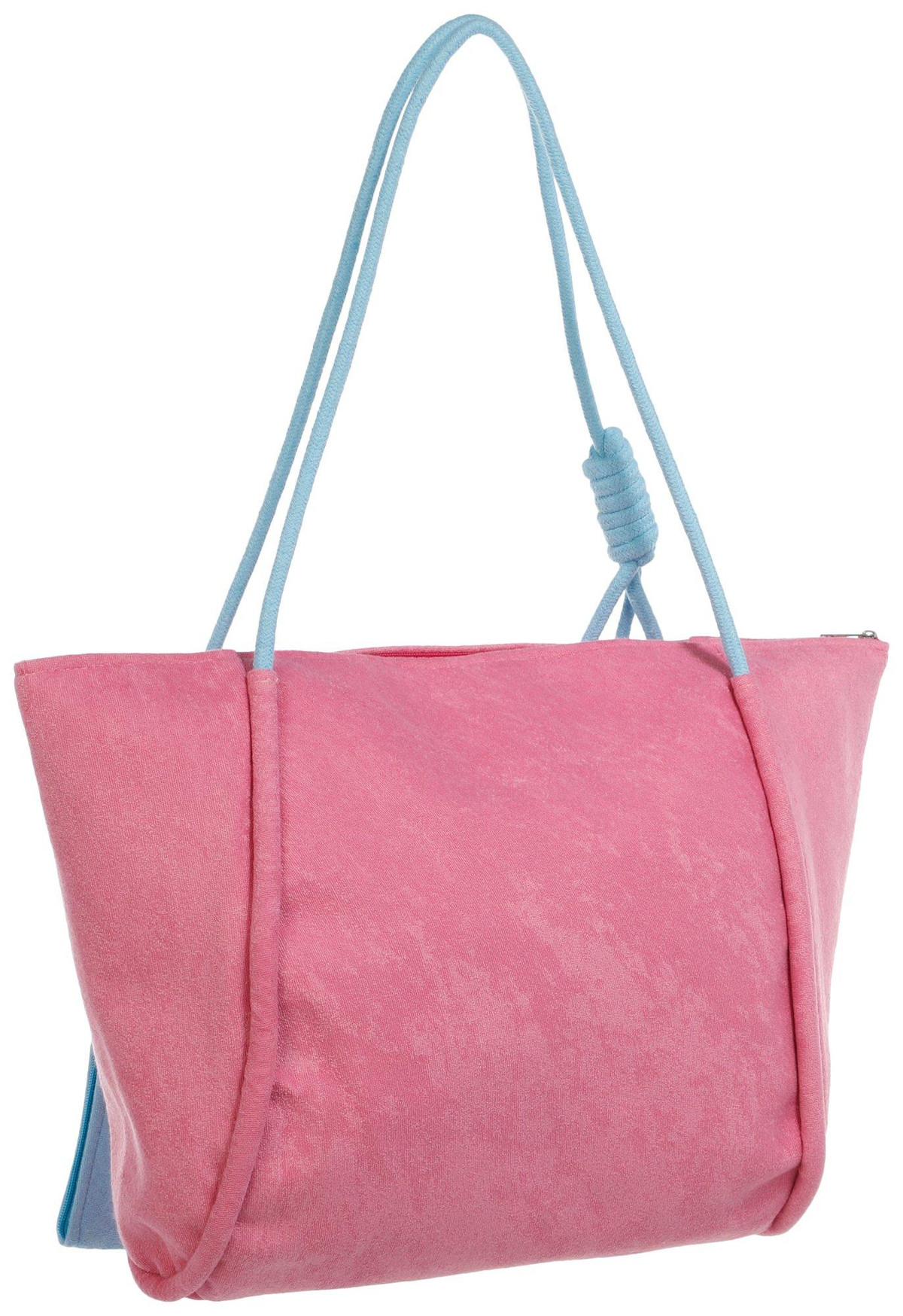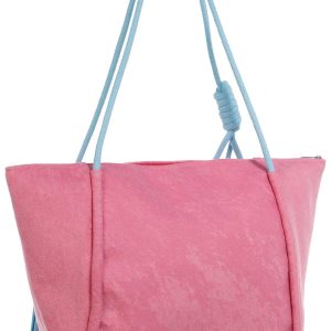 This Pink Terry/Polyester Shoulder Beach Tote Bag features a beautiful deisgn, on poly woven construction, dual rope handles, a back zipper pocket, a top zipper closure, and a lined interior.