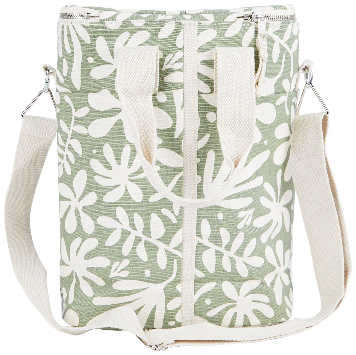 The Vacay Canvas Drinks Cooler Bag in Olive is your must-have for keeping drinks perfectly chilled on the go. Made from tough canvas, it features a zip-up insulated interior, a handy front pocket and a freezable gel divider to keep two bottles cool for up to 4 hours. Wipe it clean and fold it down for effortless storage – ready for your next adventure! 6.9 litre capacity. Measures 10 in x 4 in x 12 in.