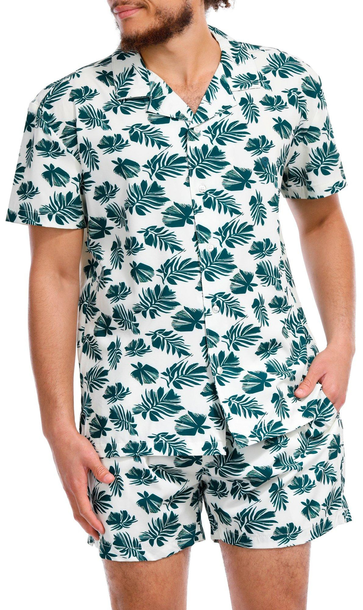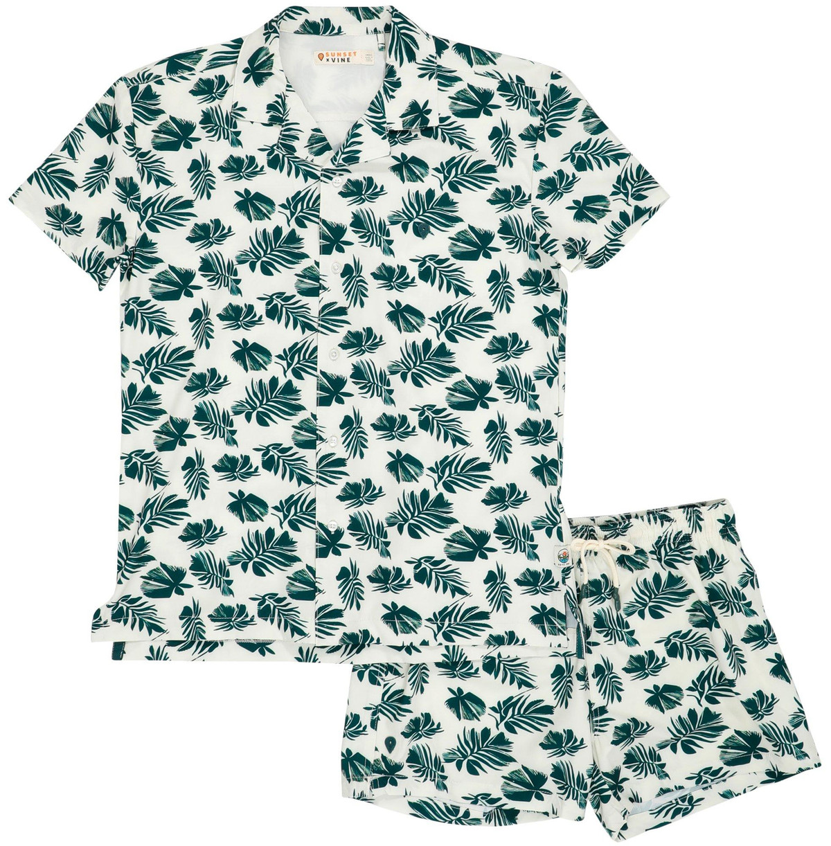 Make a statement this season with the Sunset & Vine Linen Palm Print Volley Set. Designed for effortless style and comfort, this matching button down shirt and short combo is your ultimate go-to for beach days, poolside lounging, and tropical getaways. A bold yet classic backdrop with palm leaves adds a fun, coastal vibe to your swimwear collection.