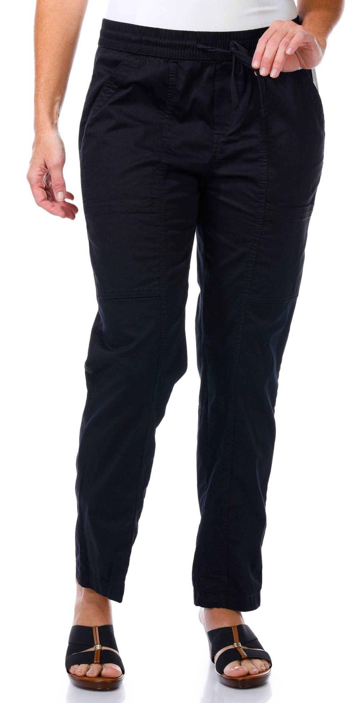 Step into everyday ease with the Women’s Marlee Ankle Pants. Featuring a solid color and a drawstring pull-on waistband, these ankle-length pants offer a straight leg fit for a clean silhouette. Side seam and back pockets add practical style, perfect for work or weekend wear. Fabrication 97% cotton, 3% spandex