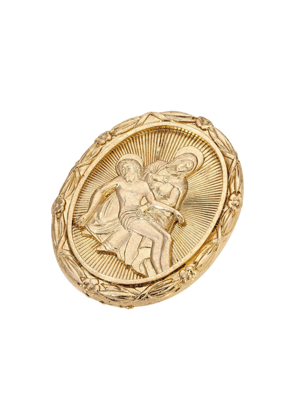 Celebrate your faith with the Symbols of Faith Gold Tone Jesus & Mary Oval Pin. Featuring a radiant gold-tone finish and a detailed image of Mary and Jesus, this inspirational pin is perfect for daily wear, religious gifting, or special occasions. Secure pin closure ensures comfort and durability. Length 2.05 in., width 26mm.