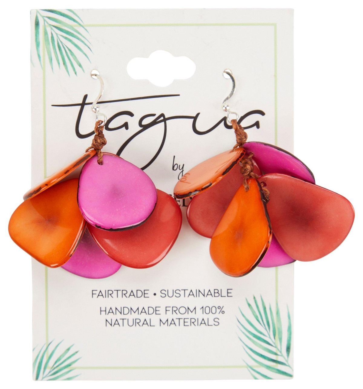 The Tagua 2 In. Mariposa Dangle Earrings feature a beautiful butterfly-inspired design crafted from eco-friendly Tagua seeds. These lightweight, vibrant earrings bring a playful and elegant touch to your style, perfect for adding a pop of color to any outfit.