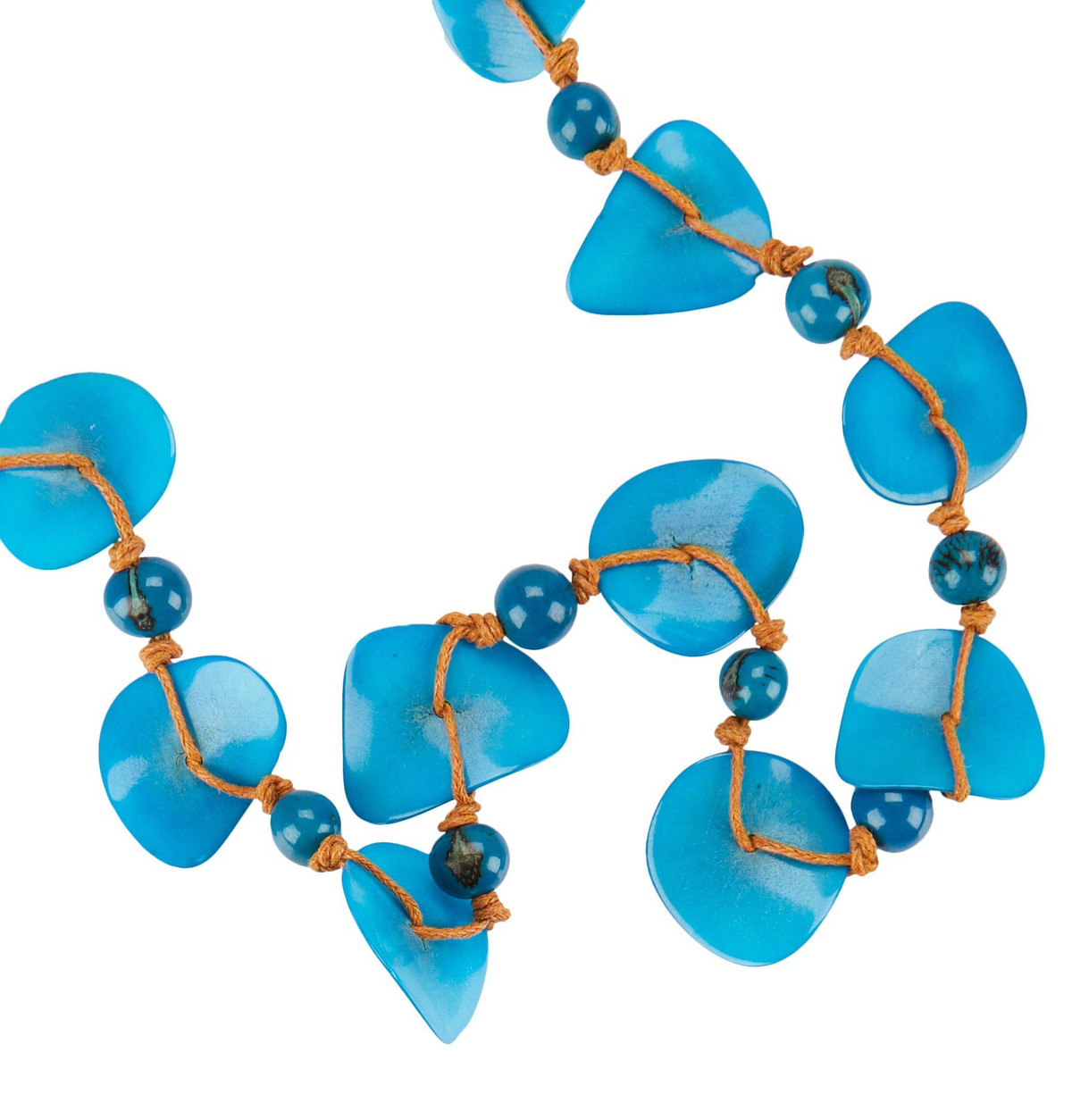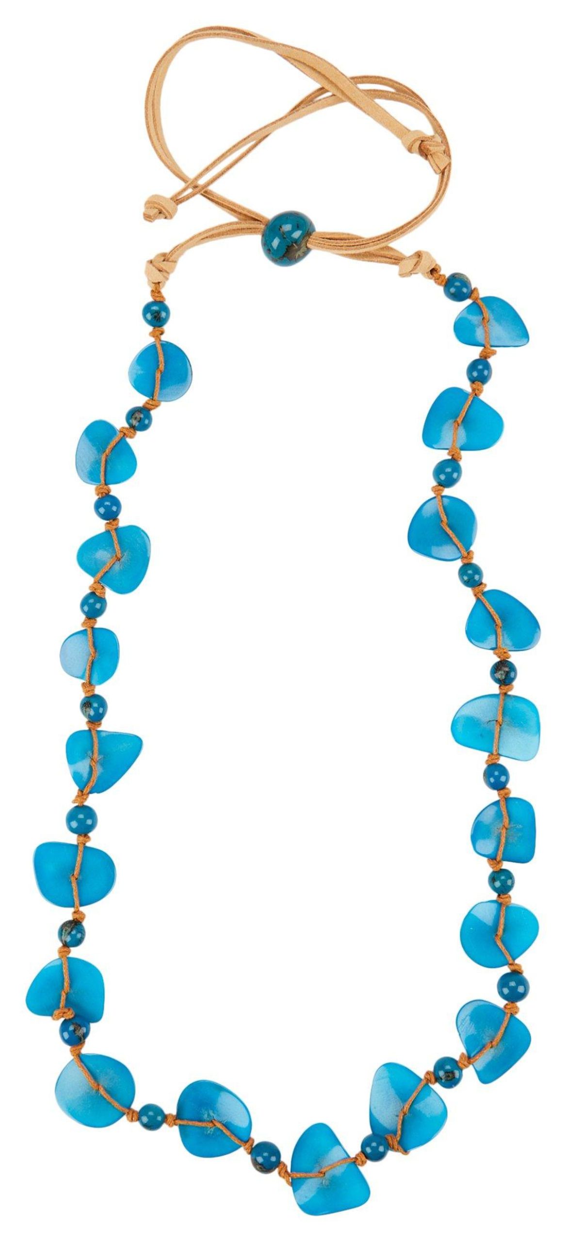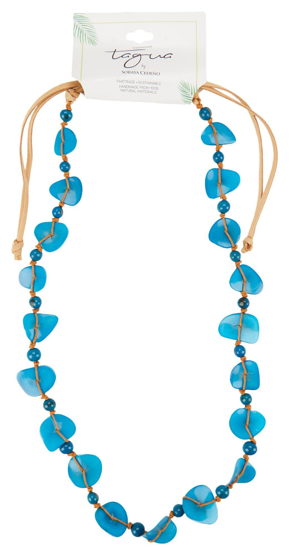 Elevate your look with the Tagua 28-36 In. Sky Adjustable Necklace, featuring handcrafted, sustainable Tagua beads in a stunning sky-blue hue. With an adjustable length for versatile styling, this lightweight necklace adds a bold yet natural touch to any outfit.