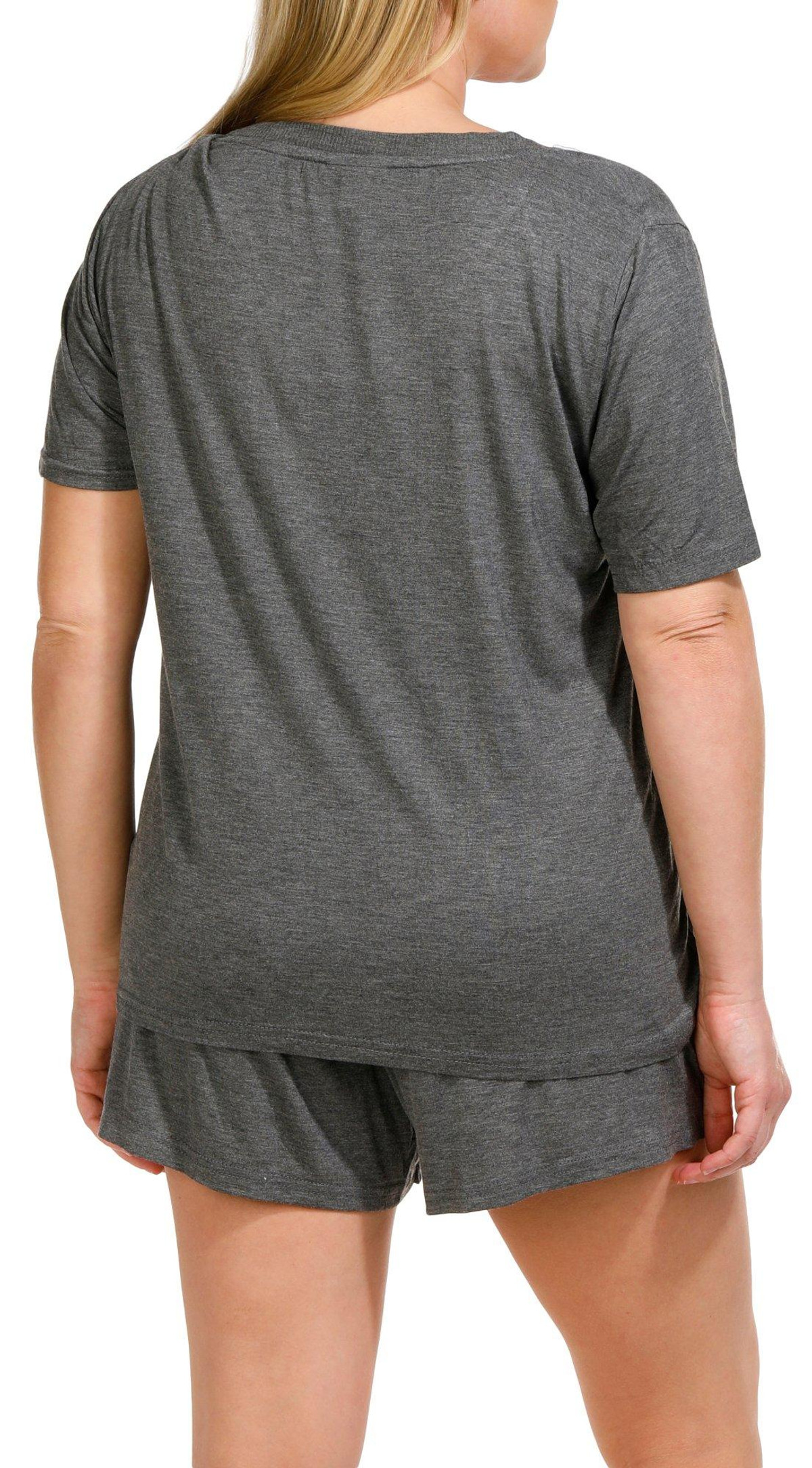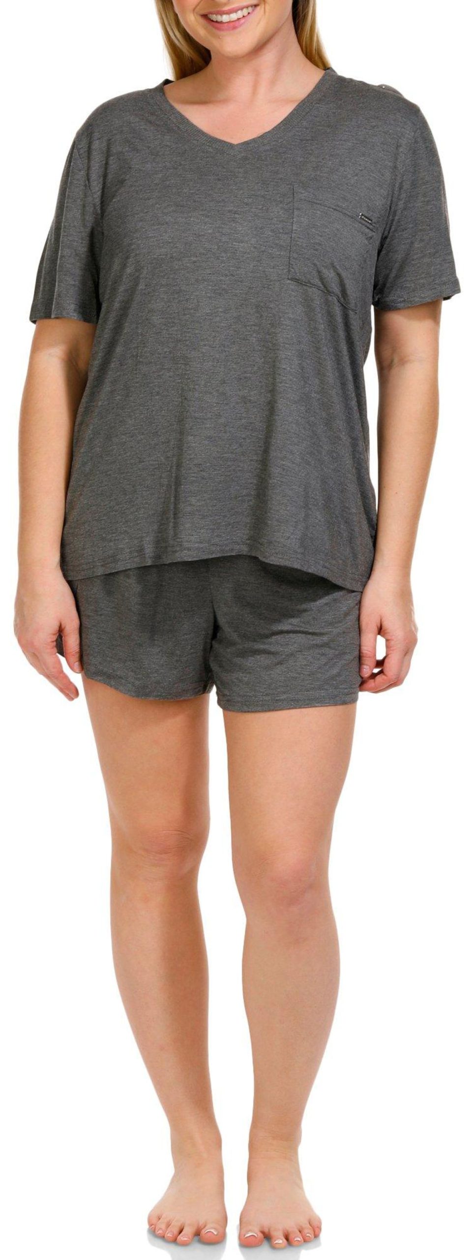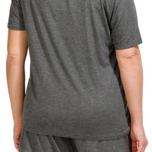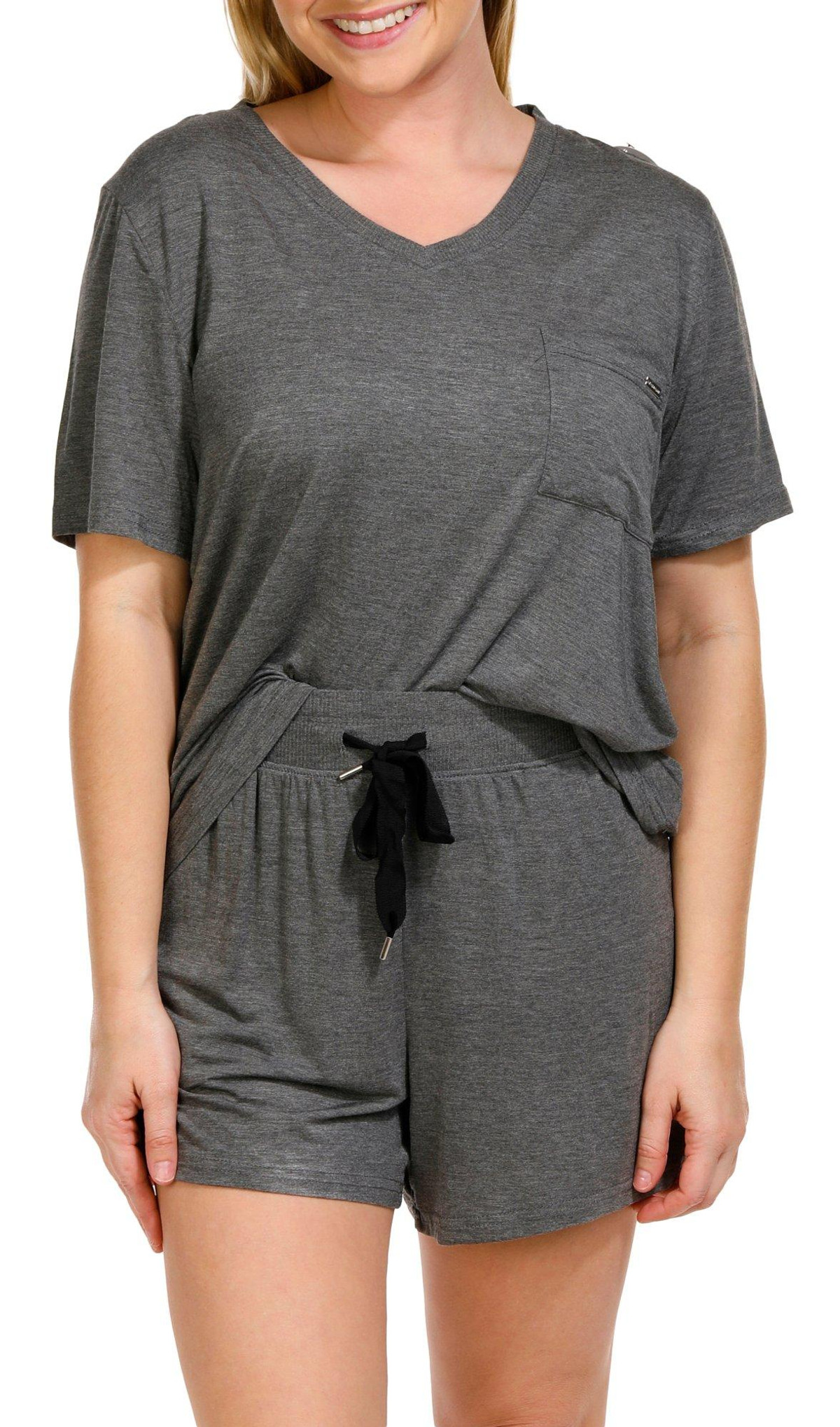 This women’s 2-piece lounge shorts set, made from a blend of rayon and spandex, offers ultimate comfort and style. The short sleeve V-neck top features a convenient chest pocket, while the matching drawstring shorts come with side slip pockets for added practicality. Perfect for relaxing at home, this set combines a cozy fit with a chic look.