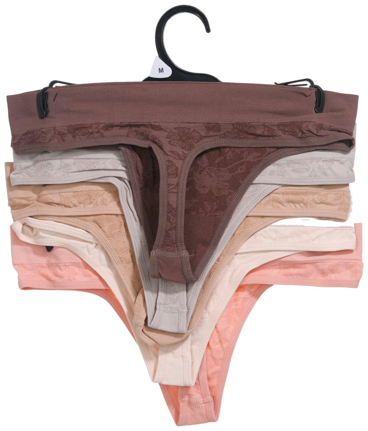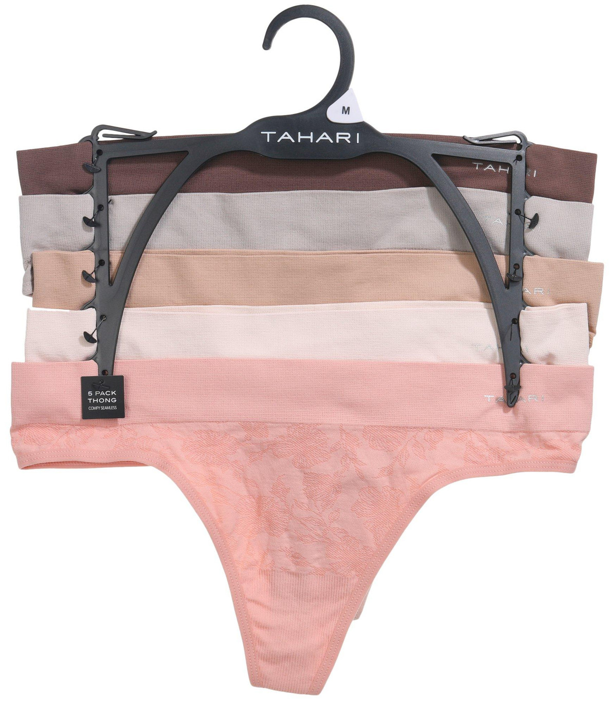 The Tahari Women’s 5-Pack Seamless Floral Thong Panties offer a perfect blend of comfort and style. Made with soft, stretchy fabric, these thongs feature a seamless design that ensures no lines under clothing. Each pair is adorned with a delicate floral print, adding a feminine touch to your everyday essentials. Ideal for all-day wear, they provide a smooth, comfortable fit.