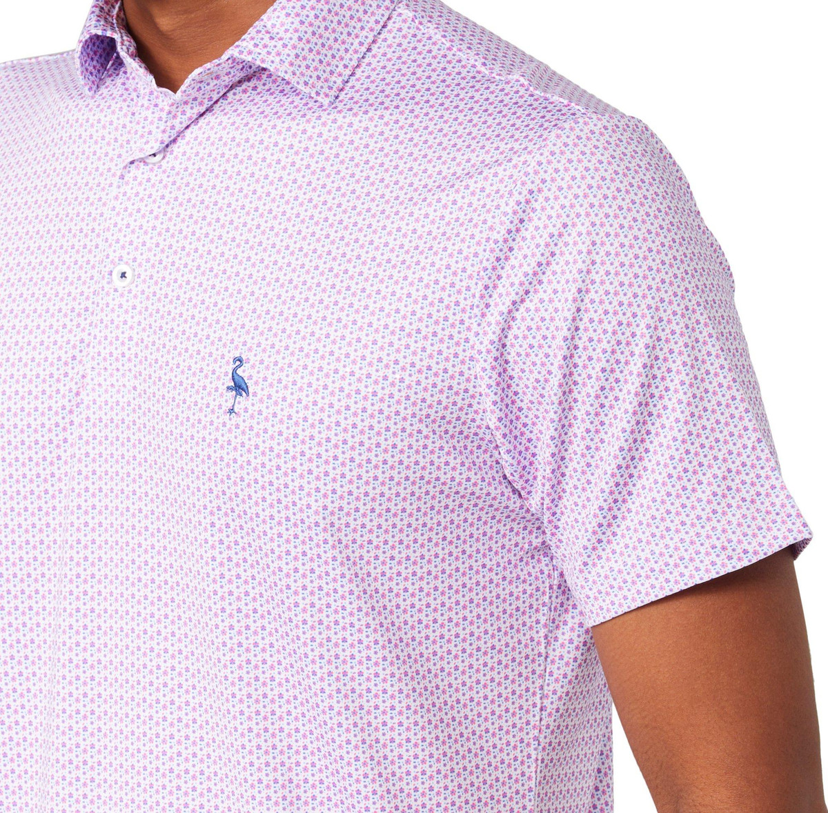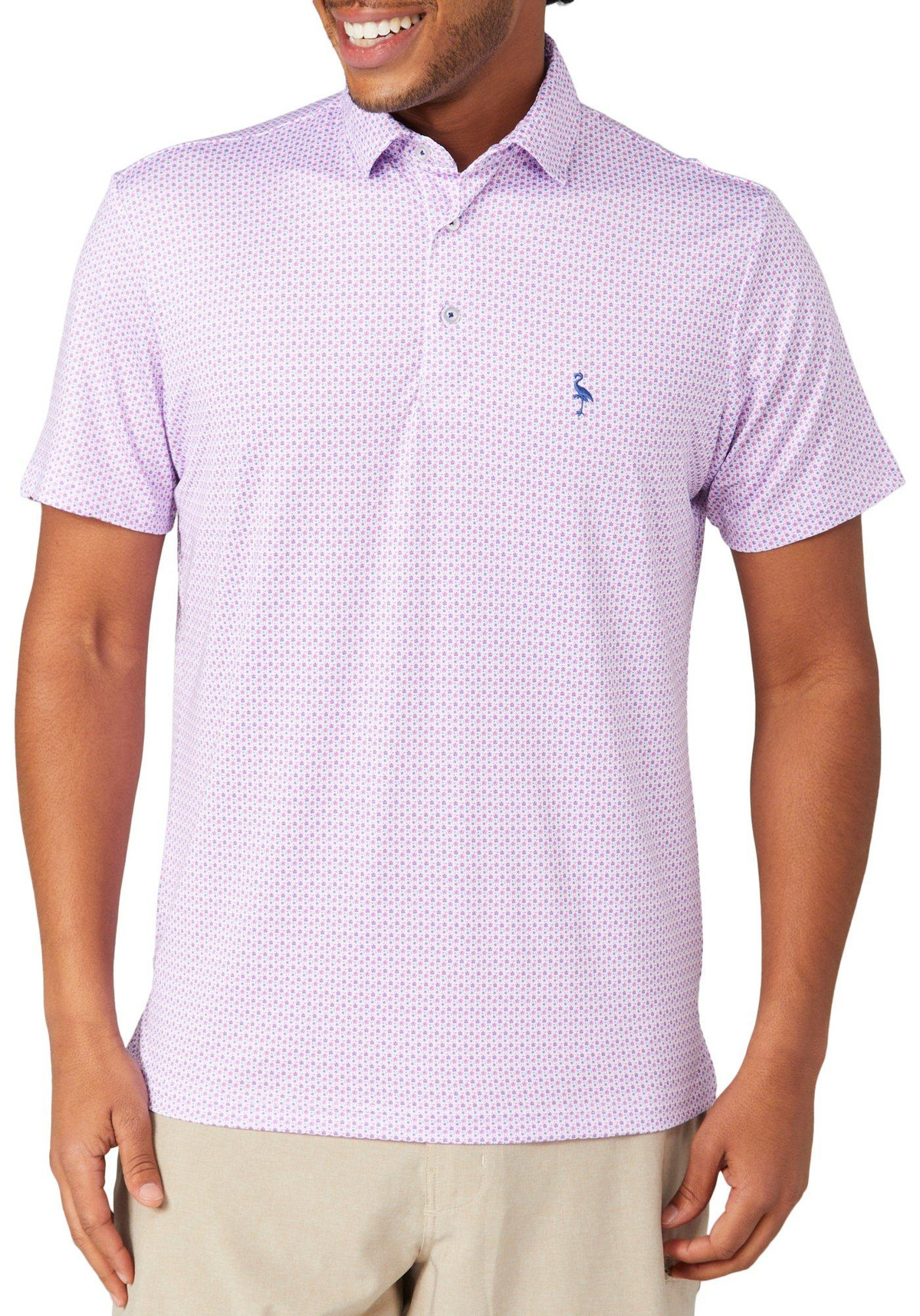 Elevate your golf attire with our Men’s Micro Floral Print Golf Polo Shirt. Made from polyester and spandex, it features an all-over micro floral print, a button-down collared neckline, and short sleeves. Enjoy UPF 30 sun protection, moisture-wicking, and 4-way stretch for ultimate comfort and flexibility. Perfect for the course or casual wear.