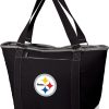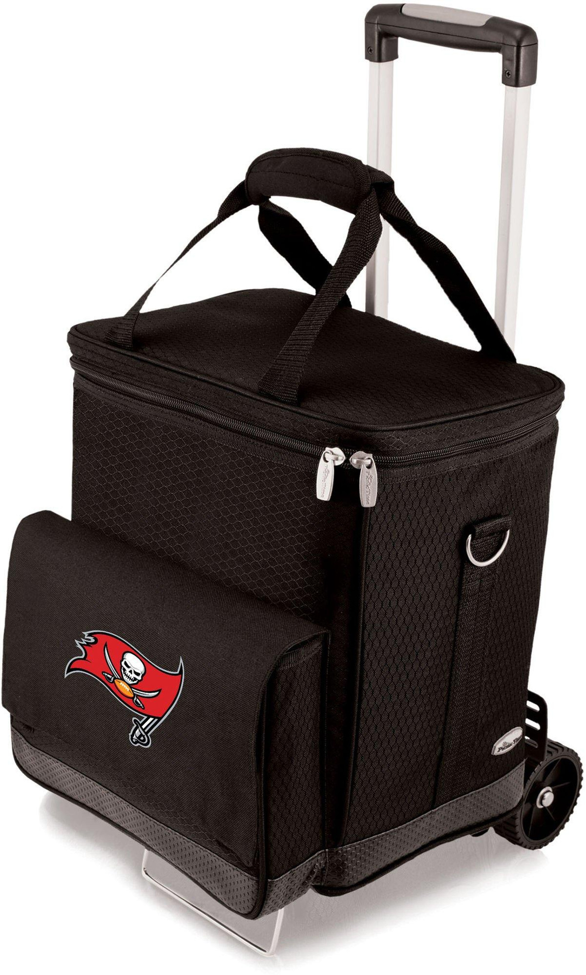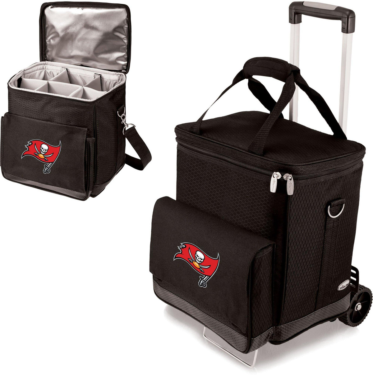 The Cellar Wine Tote by Picnic Time features removable padded dividers, water resistant liner and has Tampa Bay Buccaneers logo on front pocket. Tote comes with a rolling expandable handle trolley for easy portability. Measures 13” x 14” x 19”.