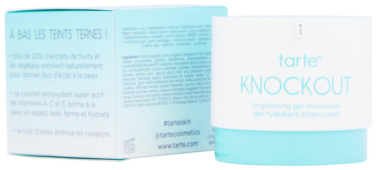 This Knockout Brightening Gel Moisturizer visibly brightens skin and minimizes the appearance of pores in as few as 10 days. This formula is infused with fruit and plant extracts like papaya, tangerine fruit water, eggplant, turmeric, and aloe that work to slough away dead skin cells that can lead to breakouts and visible signs of aging.