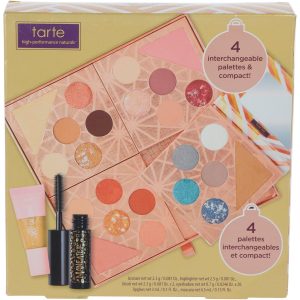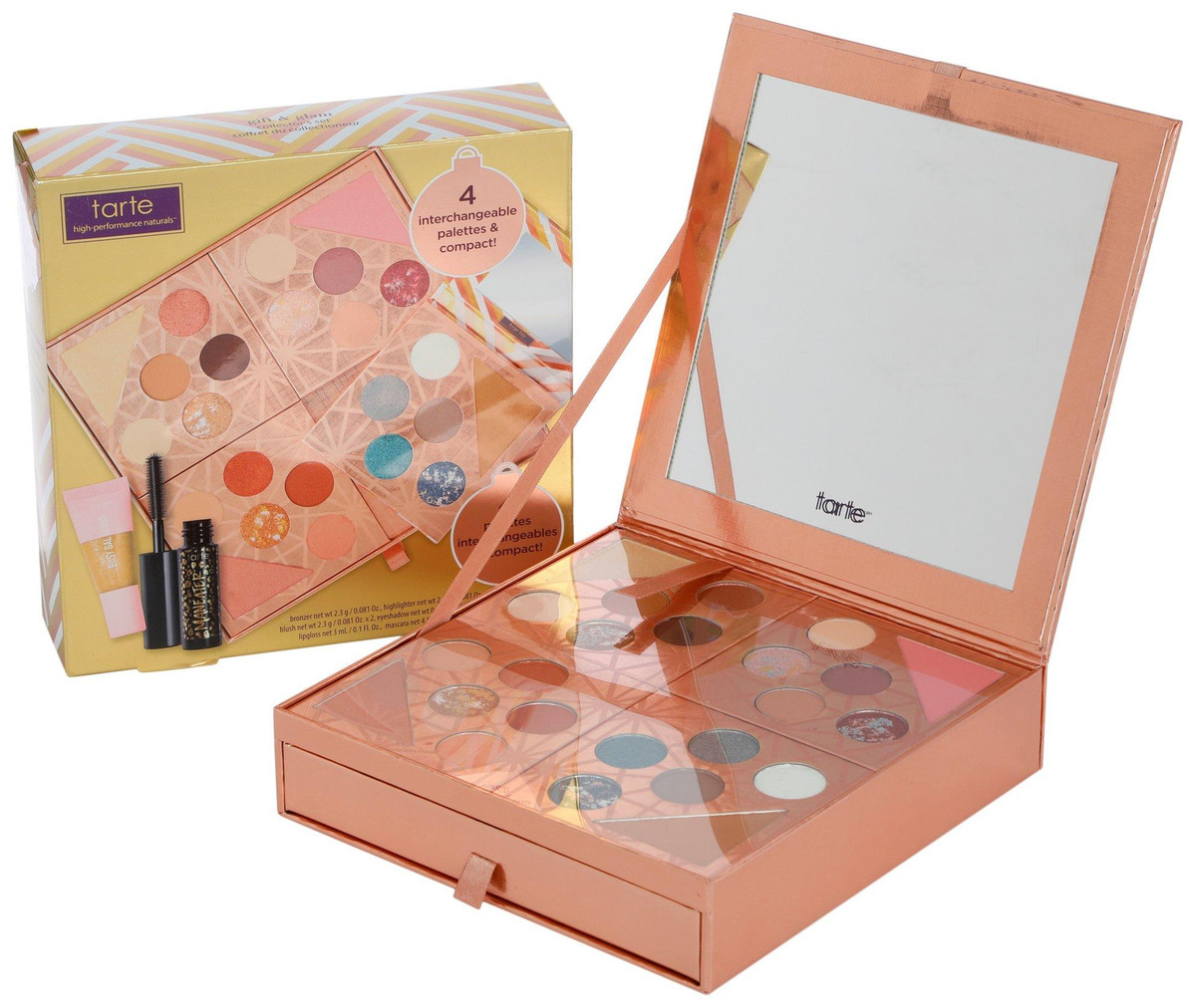Give the gift of unlimited glam looks with this 6-piece makeup palette set! It includes bronzer, highlighter, blush, and eyeshadow palettes, as well as lipgloss and mascara.