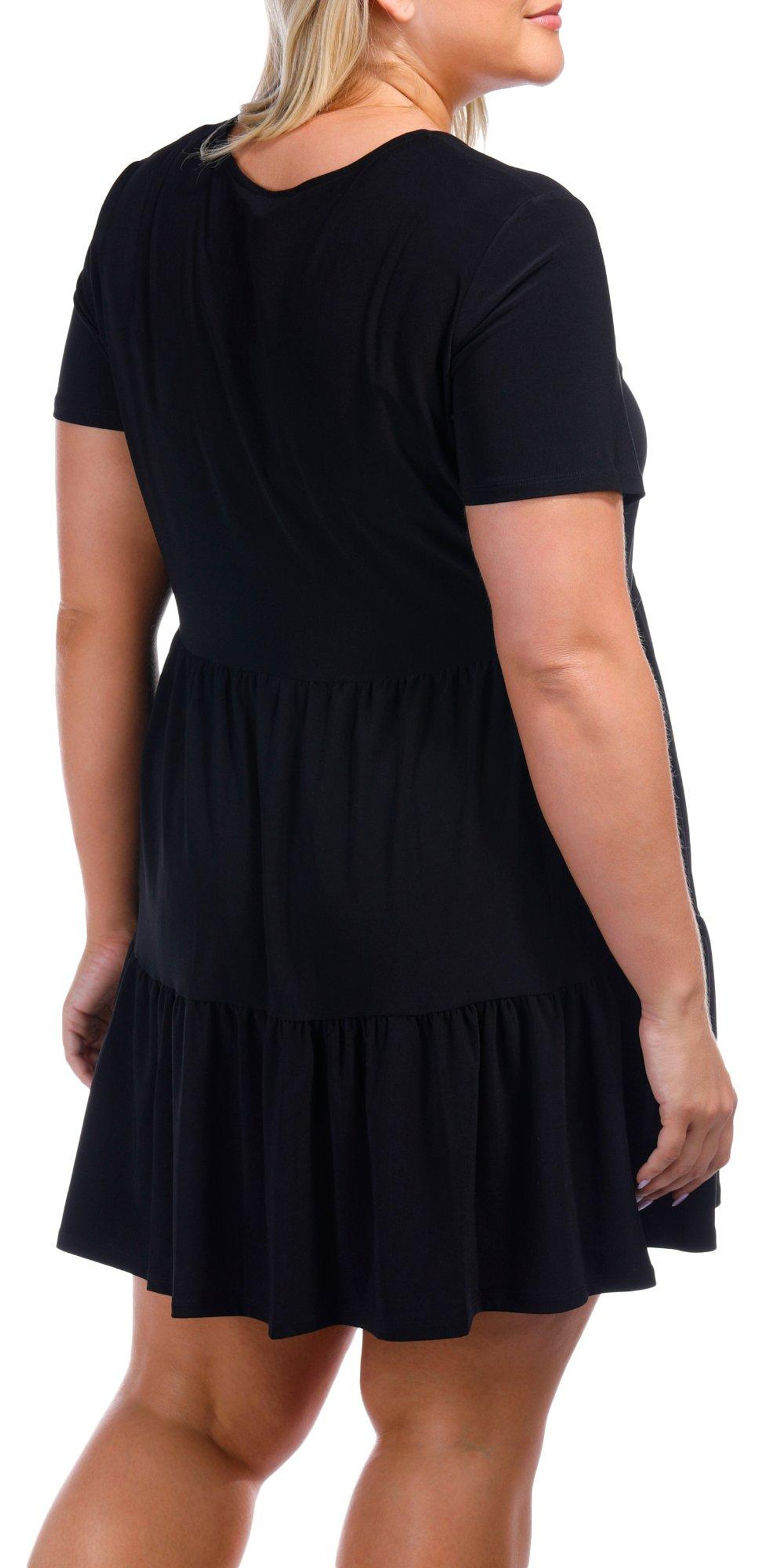 Discover casual elegance with this short sleeve tiered dress, featuring a chic solid color design on soft lightweight fabric, a short hemline and a relaxed fit. Perfect for dinner out, a day at the office or weekend shopping trips, this dress effortlessly combines comfort and style. Fabrication is 95% Polyester, 5% Elastane. Dress length measures approximately 35 in.