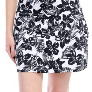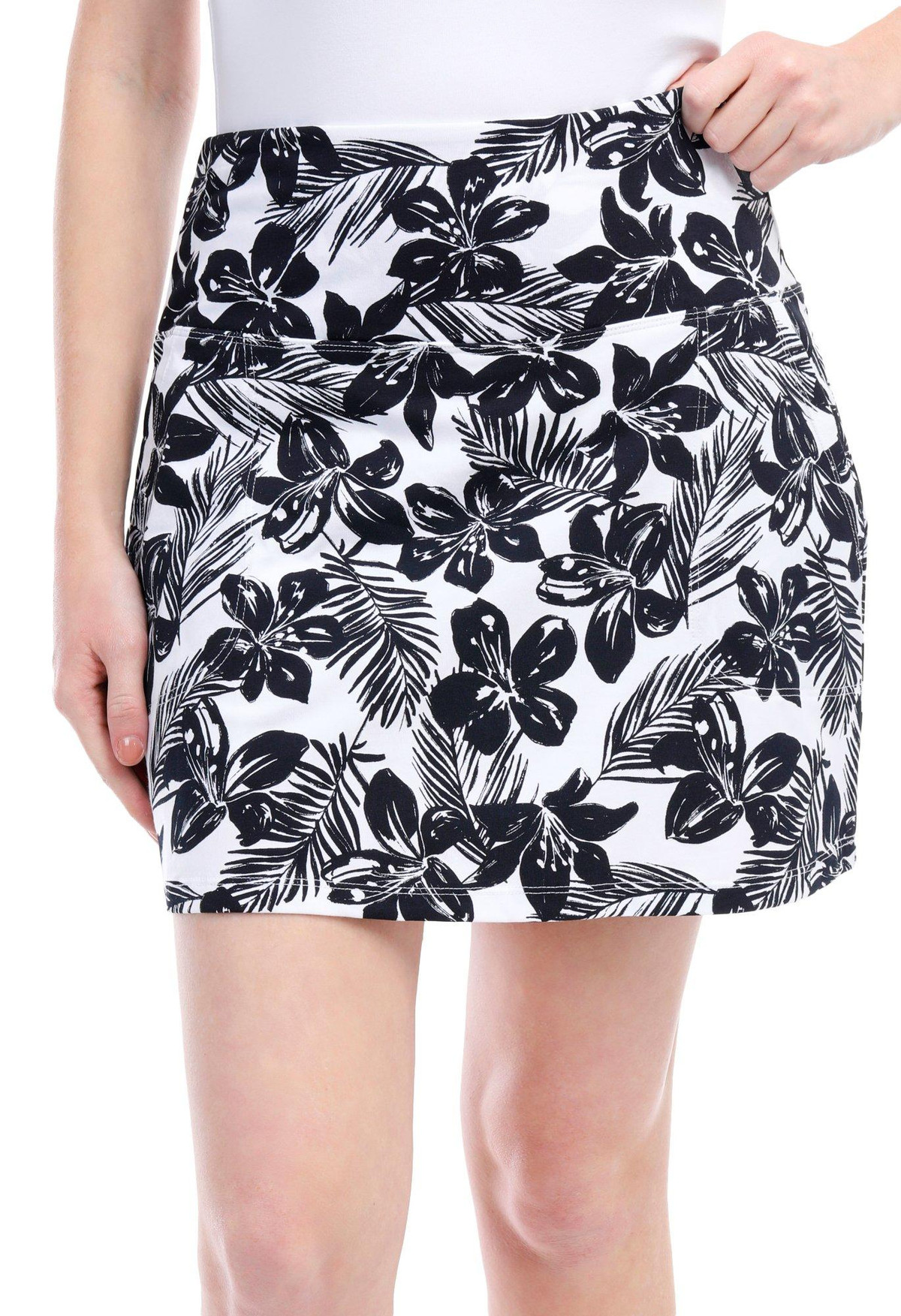 Stay stylish and comfortable with the Womens Active Palm Hibiscus Skort. This versatile skort features a pull-on waistband for easy wear, side slip pockets for convenience, and an invisible panel that smoothes your tummy for a flattering fit. The palm hibiscus inspired pattern adds a fun touch, making it perfect for workouts or casual outings.