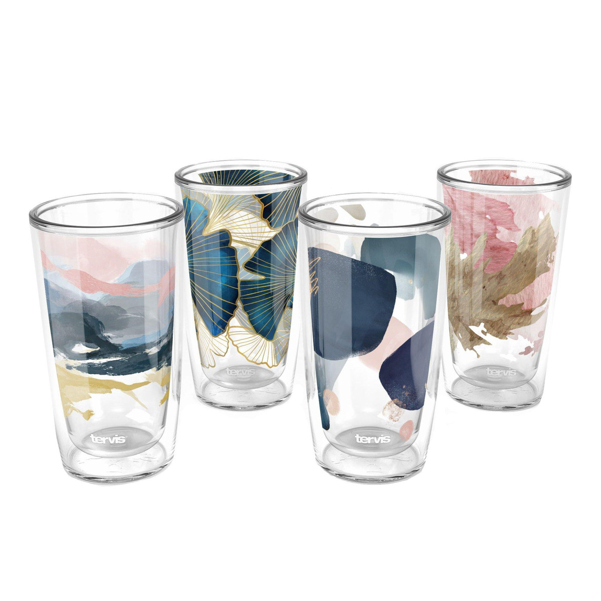 This 4 pack Autumn Gold Tumbler collection features four individual designs printed and sealed between the walls of these unlined tumblers. These tumblers feature double-wall insulated construction that keeps drinks hot or cold longer and reduces condensation to prevent rings on your table. Strong, impact resistant BPA-free material means these tumblers can take a tumble without shattering and won’t retain tastes or odors.