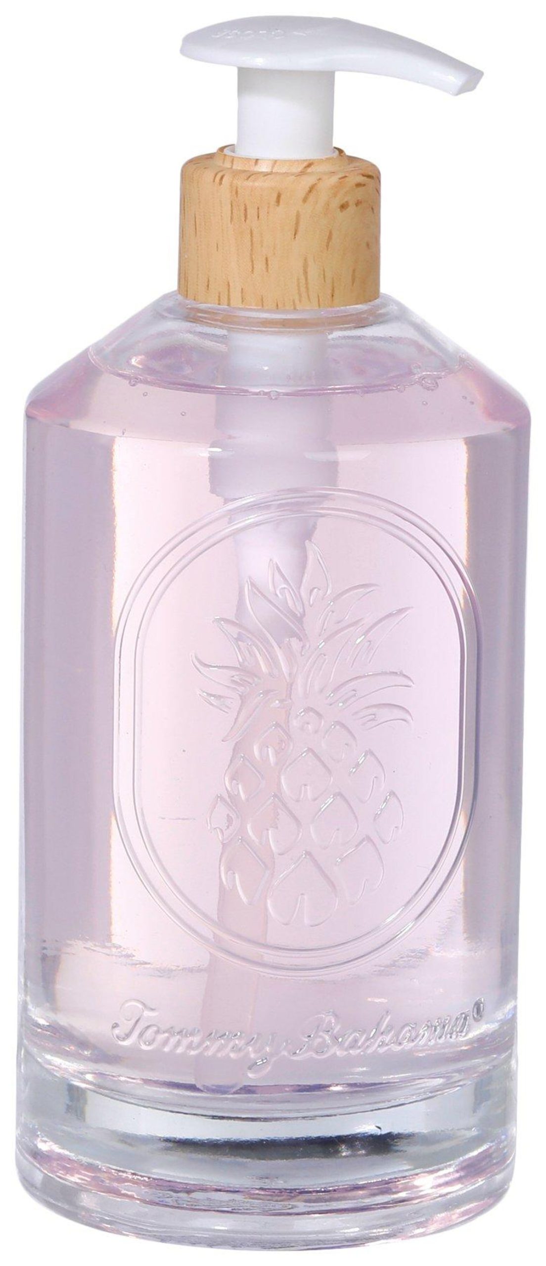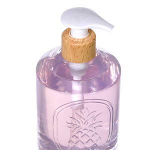 This premium hand soap comes in a substantial glass pump bottle with front pineapple design. Soap is formulated with aloe vera, shea butter, essential oils and mild cleansers. Bottle contains 14 fl.oz.