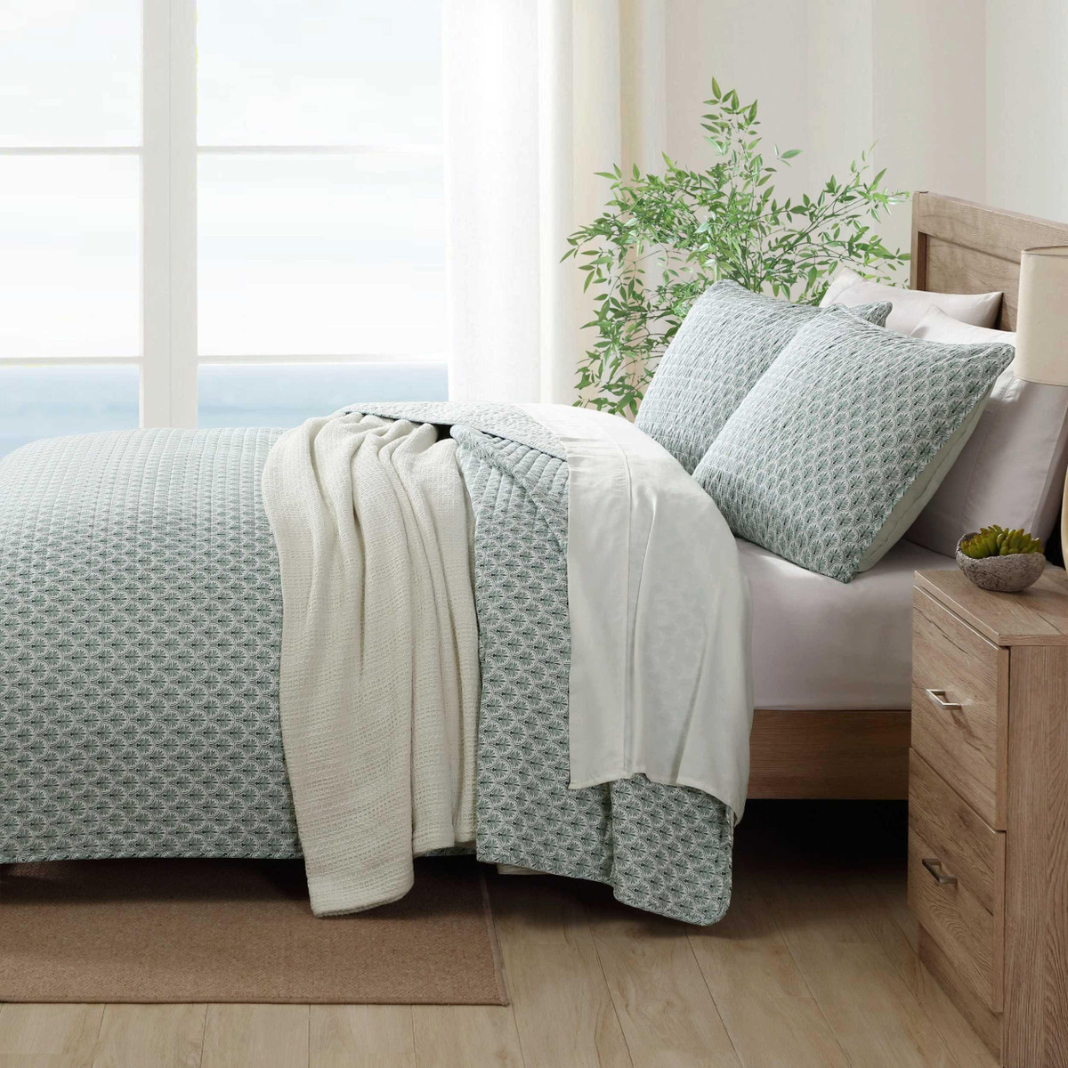 The Tommy Bahama Coastal Batik Quilt Set blends coastal charm with timeless style. Featuring a serene mix of blue and white hues inspired by the ocean, it creates a relaxed, beachy aesthetic. Ideal for coastal or nature inspired décor. Made from 100% cotton with cotton (80%) and polyester (20%) filling, the quilt is lightweight and easy to layer for year-round comfort.