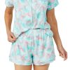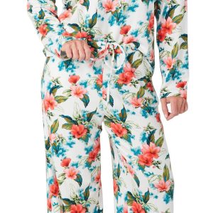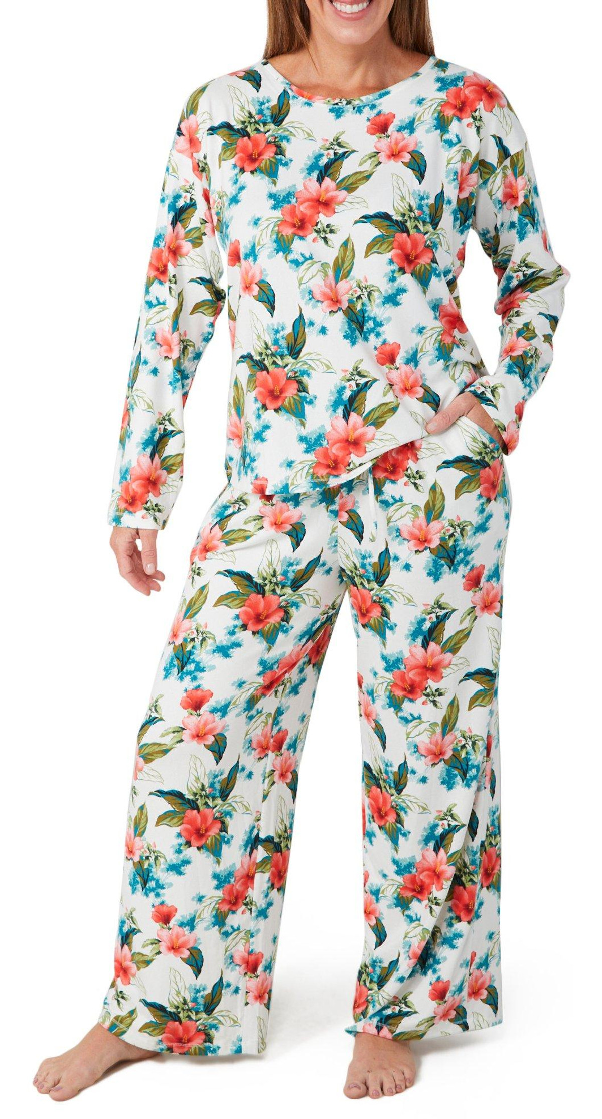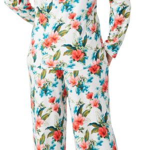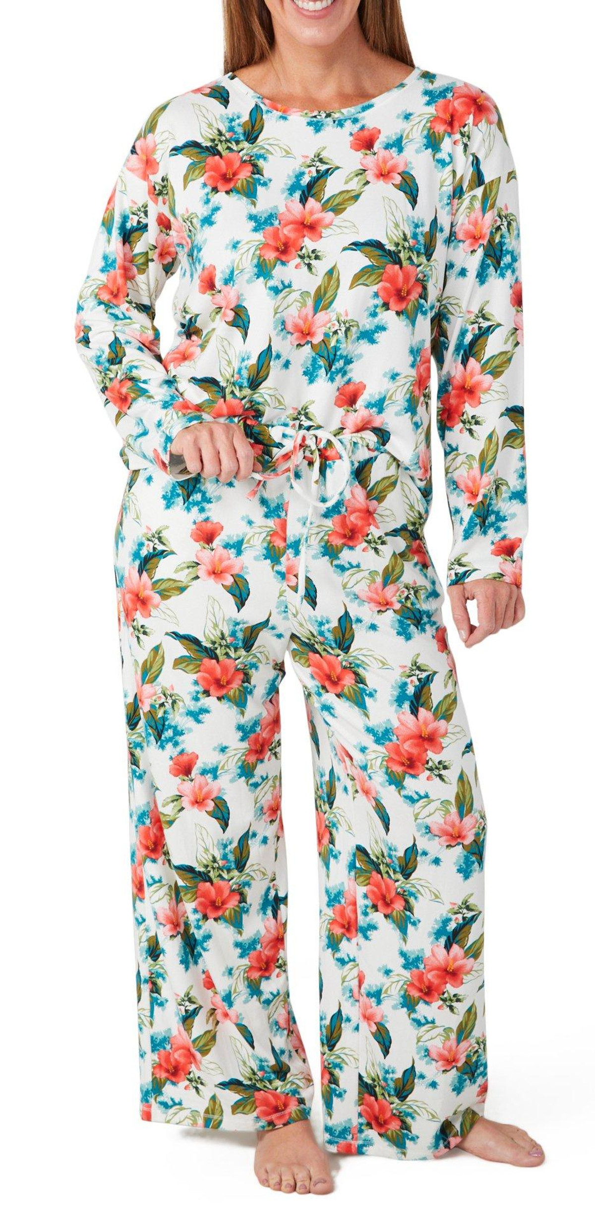 Cozy up in effortless style with this 2 piece pajama set, featuring a soft short sleeve top and matching long bottoms. Designed for all night comfort and all day lounging, the relaxed fit and coordinated look make it a go to for laid-back days and restful nights. Fabrication is 95% polyester, 5% spandex.
