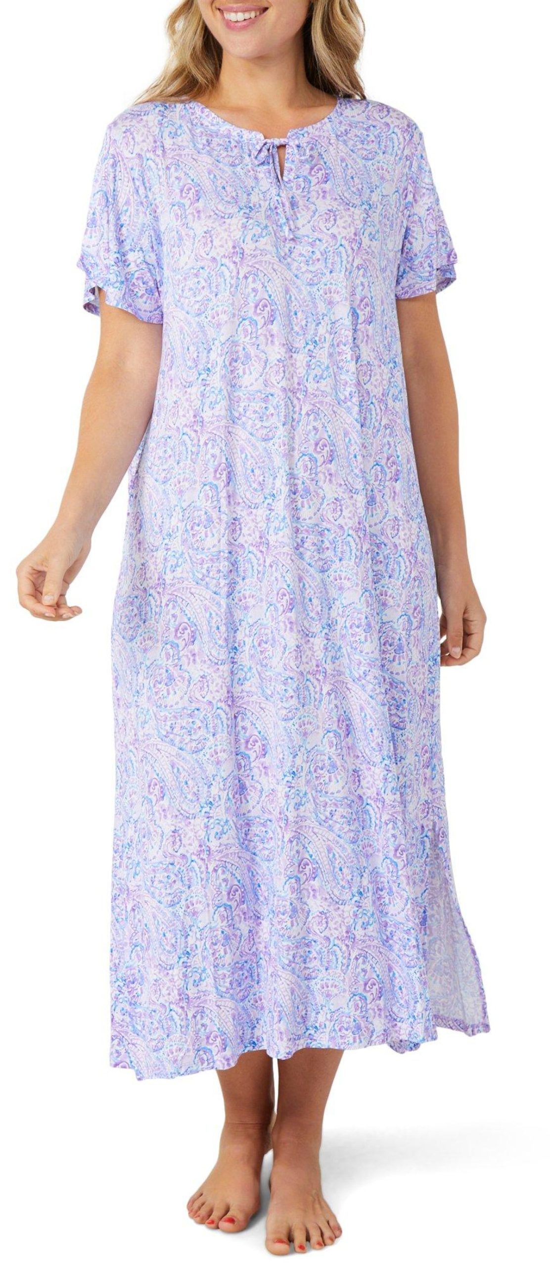 Embrace sweet dreams in this long sleep gown. Slip into the classic fit and effortless pull-on design of this ankle-length beauty. Featuring a chic neckline and airy style, it’s perfect for warm nights.