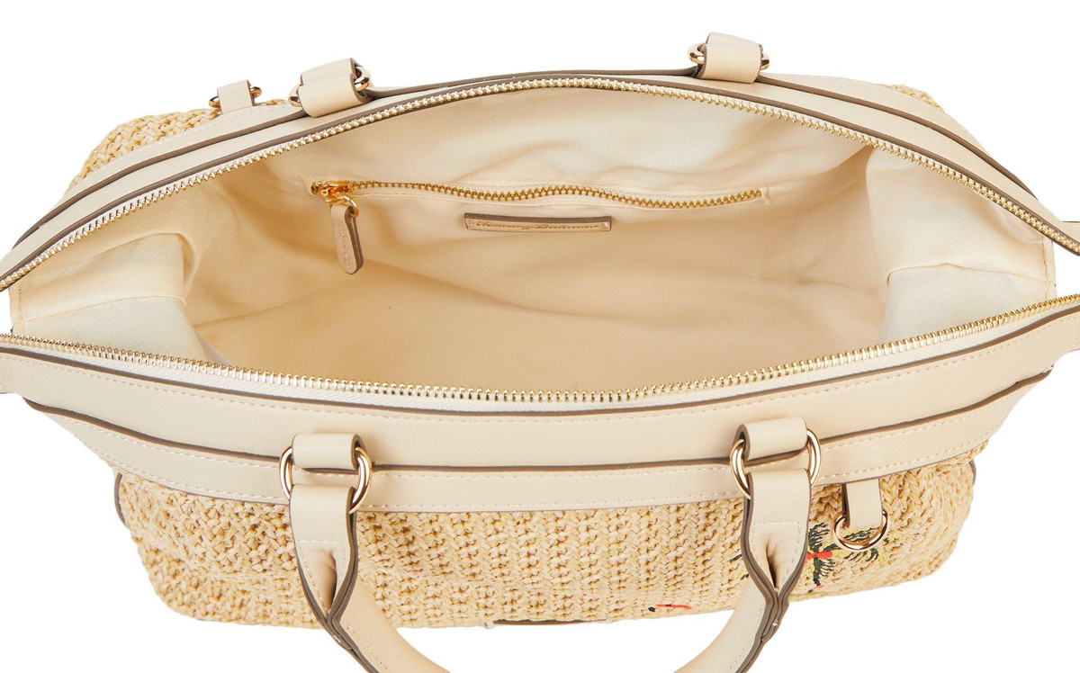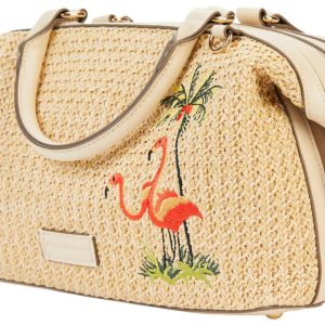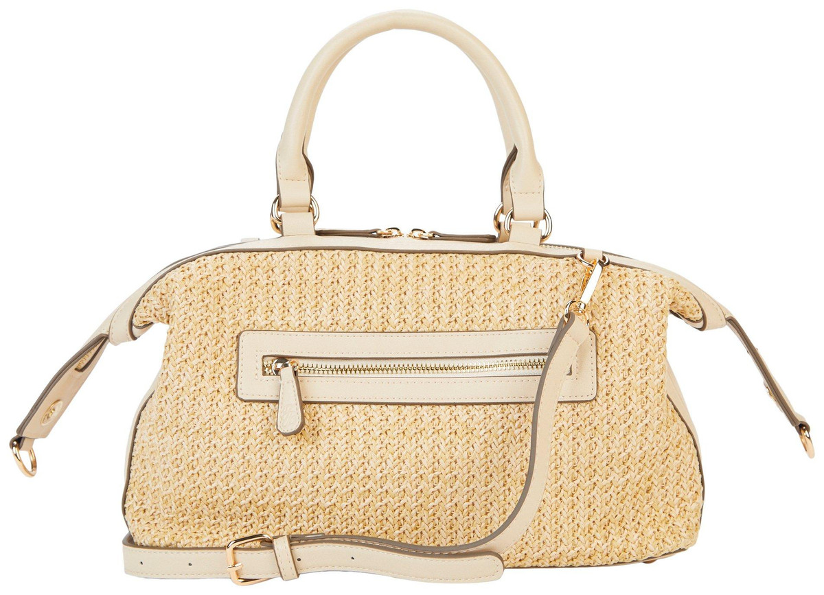 This Tommy Bahama satchel features double shoulder straps and a removable long adjustable strap for versatile carrying options. The woven textured design adds a touch of coastal charm while the outer zipper pocket provides quick access to essentials. Perfect for everyday use with a relaxed yet refined style.