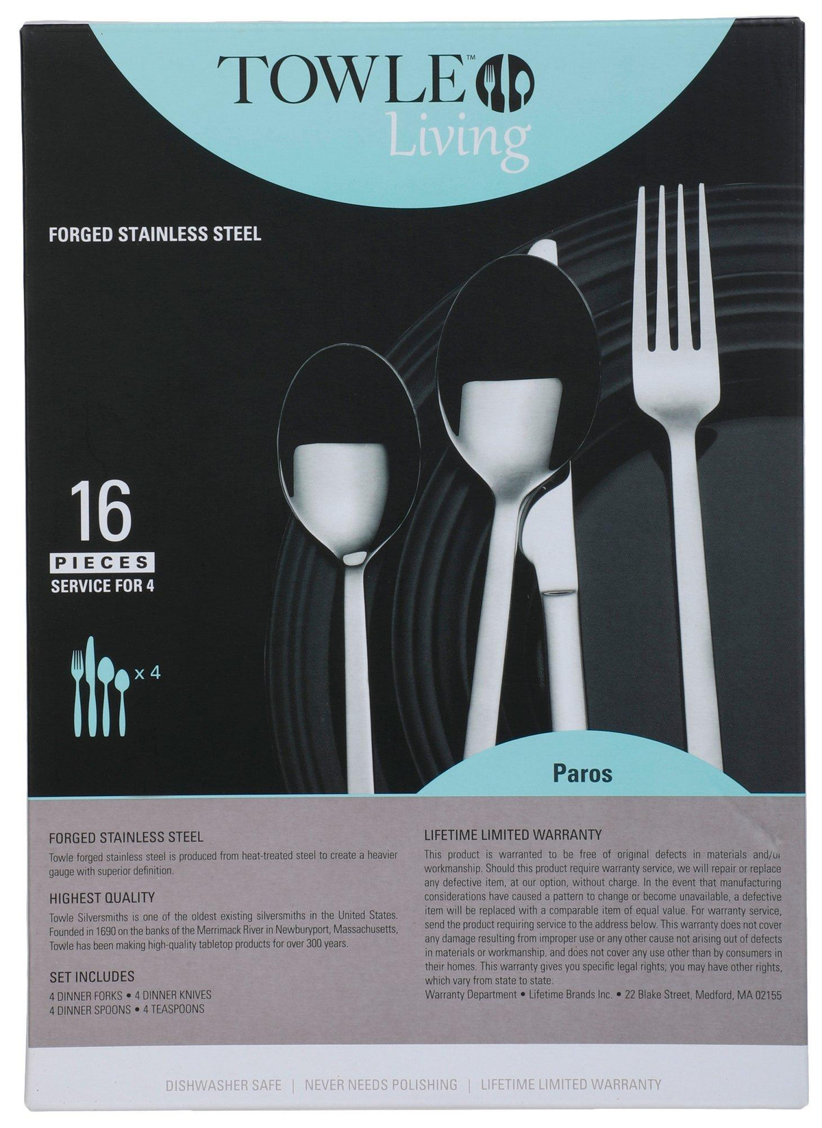 This Living Forged Paros 16 piece Flatware Set has effortless elegance. Featuring a streamlined design, this set never needs polishing, saving you time and effort. It includes 4 dinner forks, 4 dinner knives, 4 dinner spoons and 4 teaspoons.