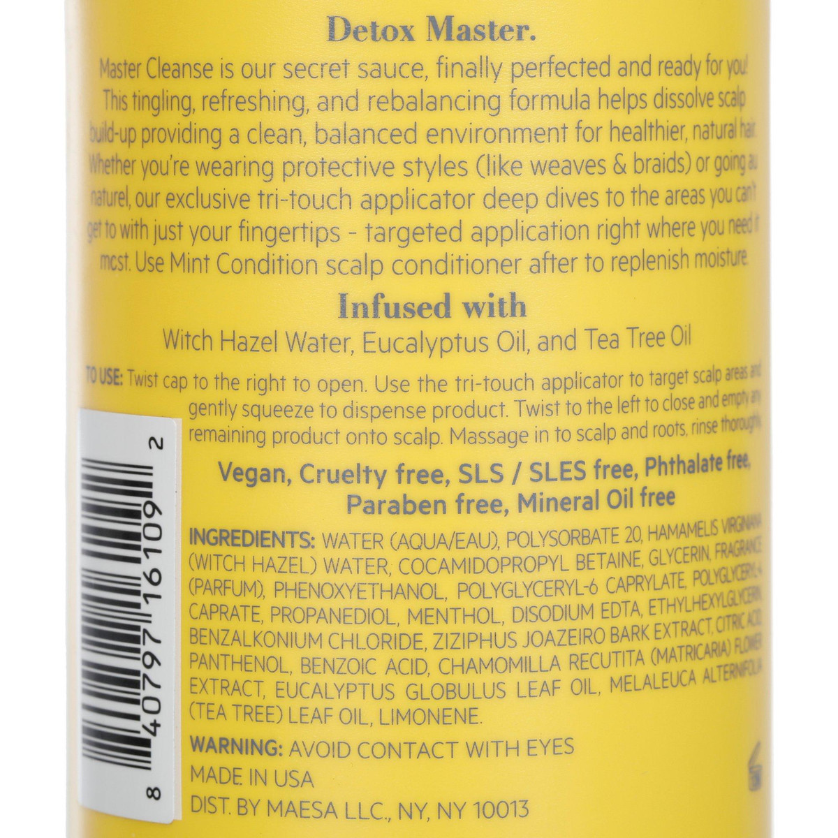 Purify and soothe your scalp with the TPH 8 Oz Master Cleanse Scalp Wash. Formulated with witch hazel water, eucalyptus oil, and tea tree oil, it delivers a tingling, refreshing cleanse that removes buildup and excess oil. The exclusive tri-touch applicator ensures targeted application for maximum effectiveness. Suitable for use between washes or after physical activity. Contains 8 fl oz.