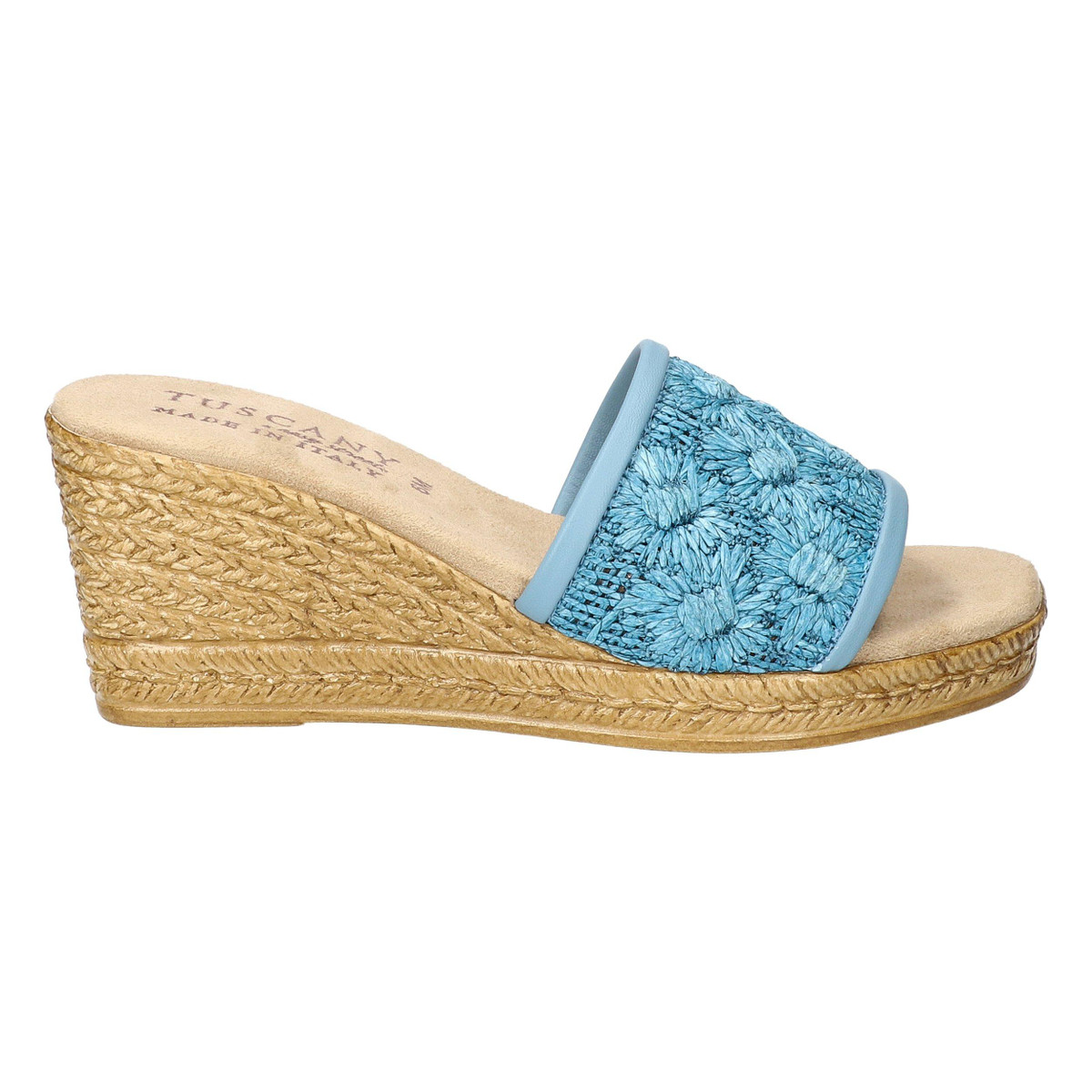Set your sights on the Italian-crafted Ricci wedge slide sandal from Tuscany by Easy Street. Its raffia one-banded upper with a feminine floral design will enhance all your summer outfits with Italian elegance. The lightweight wedge with delicate textured details resembling woven jute, and a generously padded insole from heel to toe, ensures all-day comfort and fashion.
