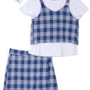 Delight her style with the Big Girls 2Pc Plaid Tee & Crossover Skort Set. Featuring a tee layered under a plaid vest and a matching crossover plaid skort, this set blends coordinated detailing and stretchy polyesterspandex fabric for flexible comfort. Ideal for school days, events or casual outings. Machine wash cold for easy care. Fabrication is 97% polyester, 3% spandex.