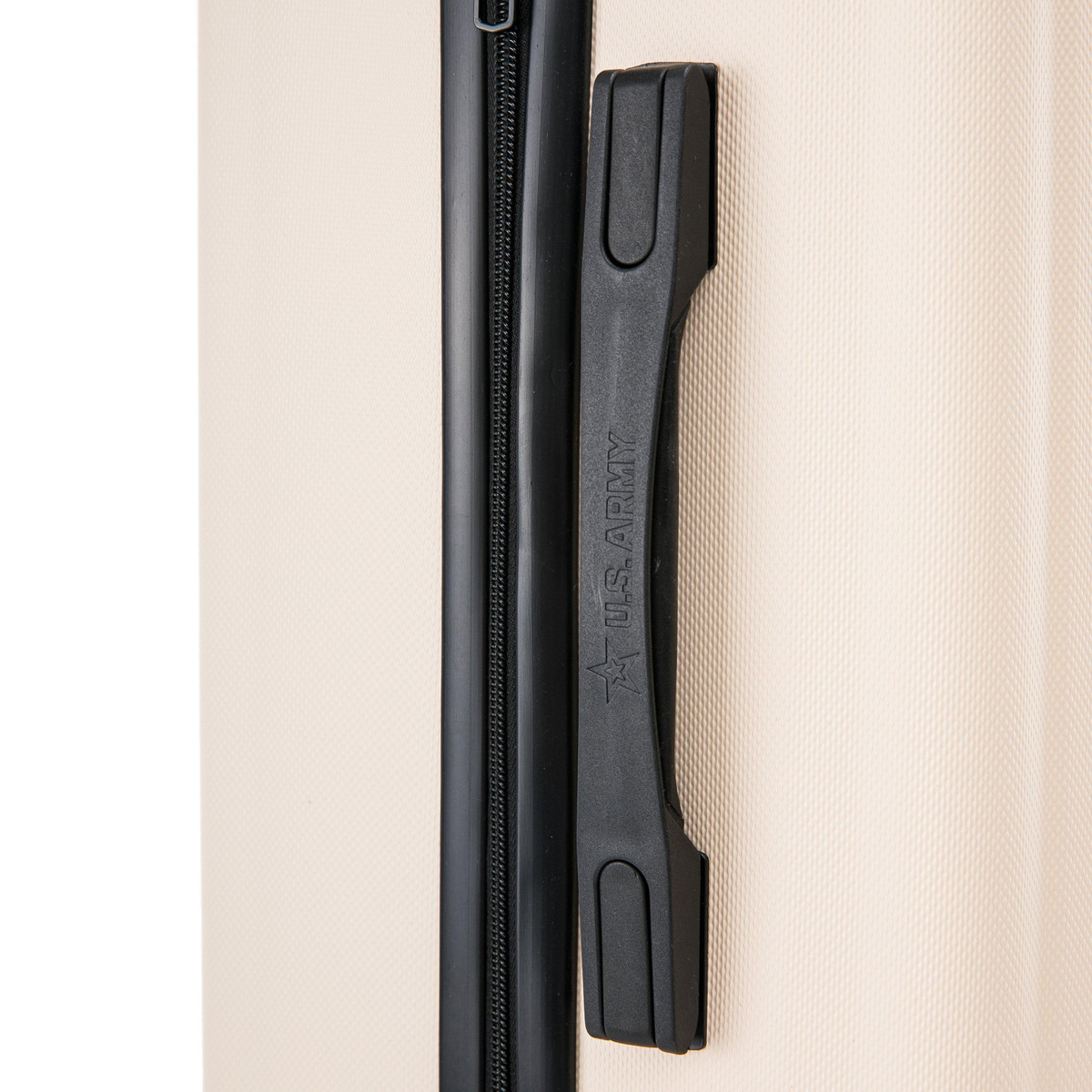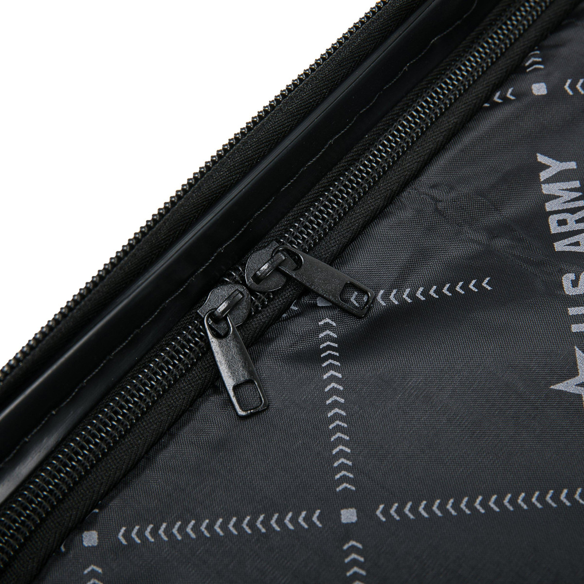 The U.S. ARMY FOX Collection large 28 in. check-in suitcase is a tribute to the bravery and strength of the U.S. Army. Tailored for the ambitious explorer, it is your ultimate companion for extended trips where extra packing space is a must. Designed with the iconic Army chevron marks and other emblematic symbols, it embodies power and endurance. Includes interior smooth-gliding double wheels and a top and side handle with gripping cushion. Exterior Measurements: 18.9 W x 11.77 D x 29.72 H.