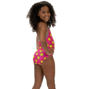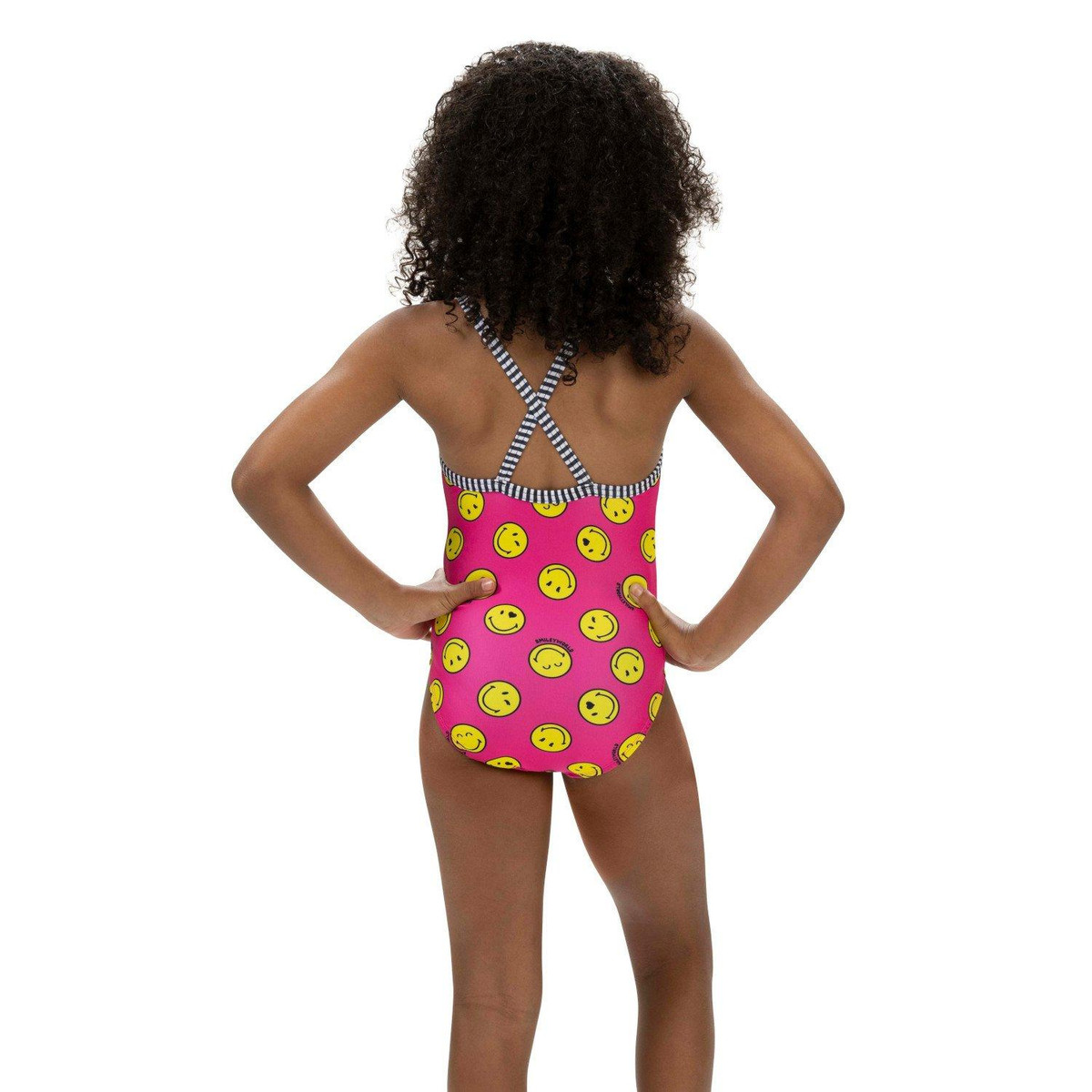 Splash into confidence with the Uglies Girls x SmileyWorld® All Smiles Criss Cross Back One Piece Swimsuit! This fun and vibrant swimsuit, from the Uglies x SmileyWorld® collaboration, empowers you to be yourself. The playful Smiley print and stylish design make a statement, while the comfortable fit lets you focus on what matters most: having fun and rocking your swim. Fabrication 91% polyester, 8% spandex. Stay happy, swim strong!
