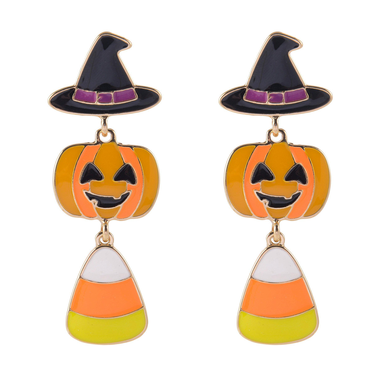 UNCAS Candy Corn Pumpkin Witch Halloween Earrings