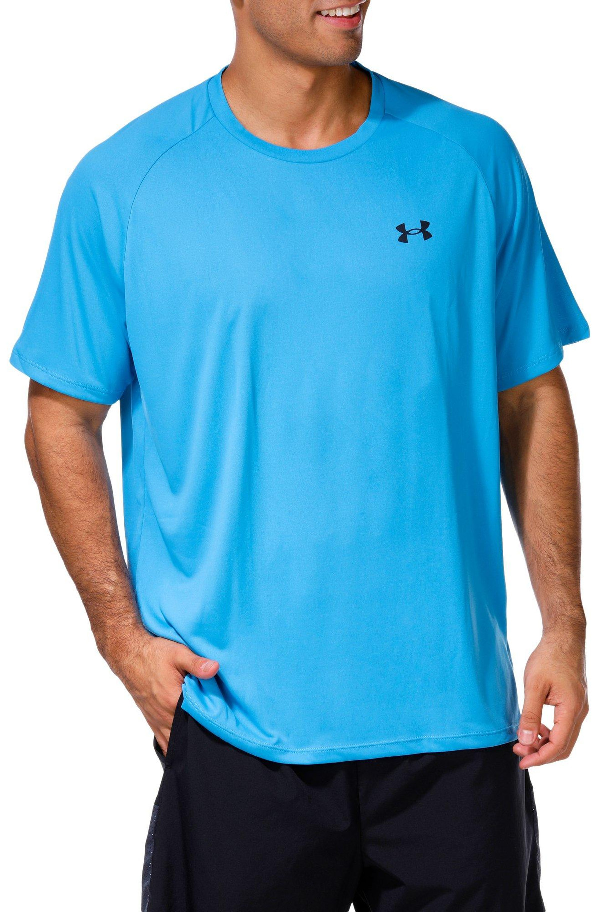 This UA Tech 2.0 short sleeve shirt features a solid textured design on lightweight stretch fabric, a crew neckline, loose and light fit that keeps you cool, quick dry, performance stretch, anti-odor tech, and relaxed fit. Fabrication 100% polyester