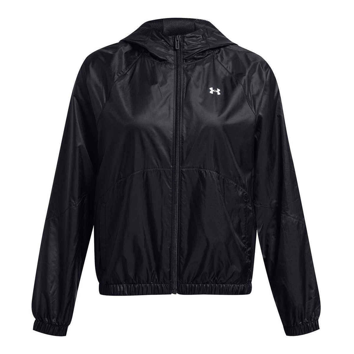Stay ready to go no matter what in the versatile Under Armour Rival Sport Windbreaker. It features a sleek solid color look, UA Storm Technology for water repellancy, open hand pockets, mesh lining for breathability, and a bungee adjusted bottom hem and elastic cuffs.