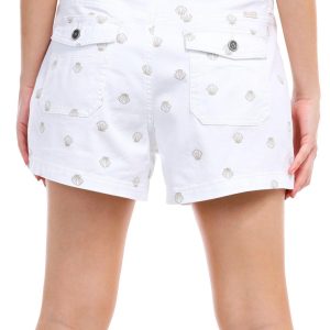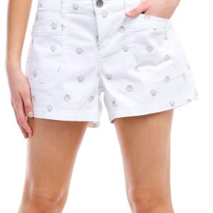 These Delaney shorts feature a stylish design on lightweight stretch fabric, two front pockets, two back button-flap pockets, and fashionable seam detailing. The inseam measures approximately 3.5 in. Fabrication is 96% cotton and 4% spandex.
