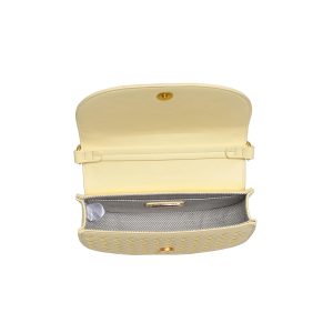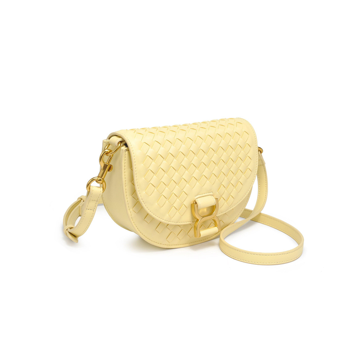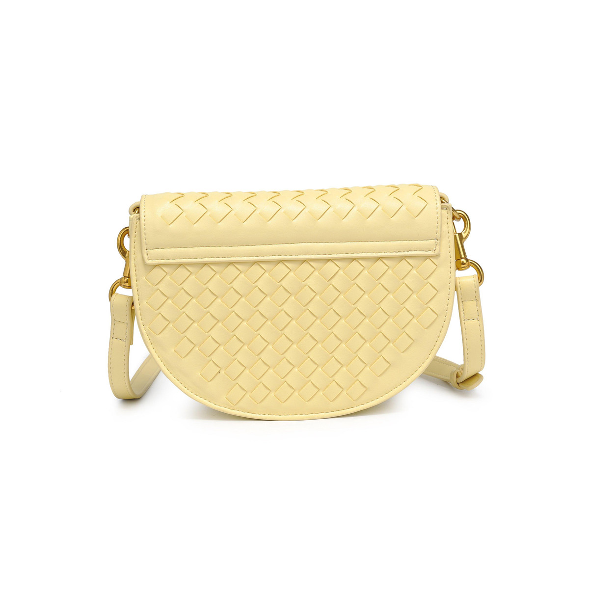Elevate your accessory game with this braided flap crossbody! The woven all-over texture and chic chain strap make it a standout piece, while the gold hardware adds a touch of sophistication. Inside, the printed fabric lining, and zip pocket ensure your essentials are stylishly secure. Measures 8.625 L x 2.75 W x 6 H.
