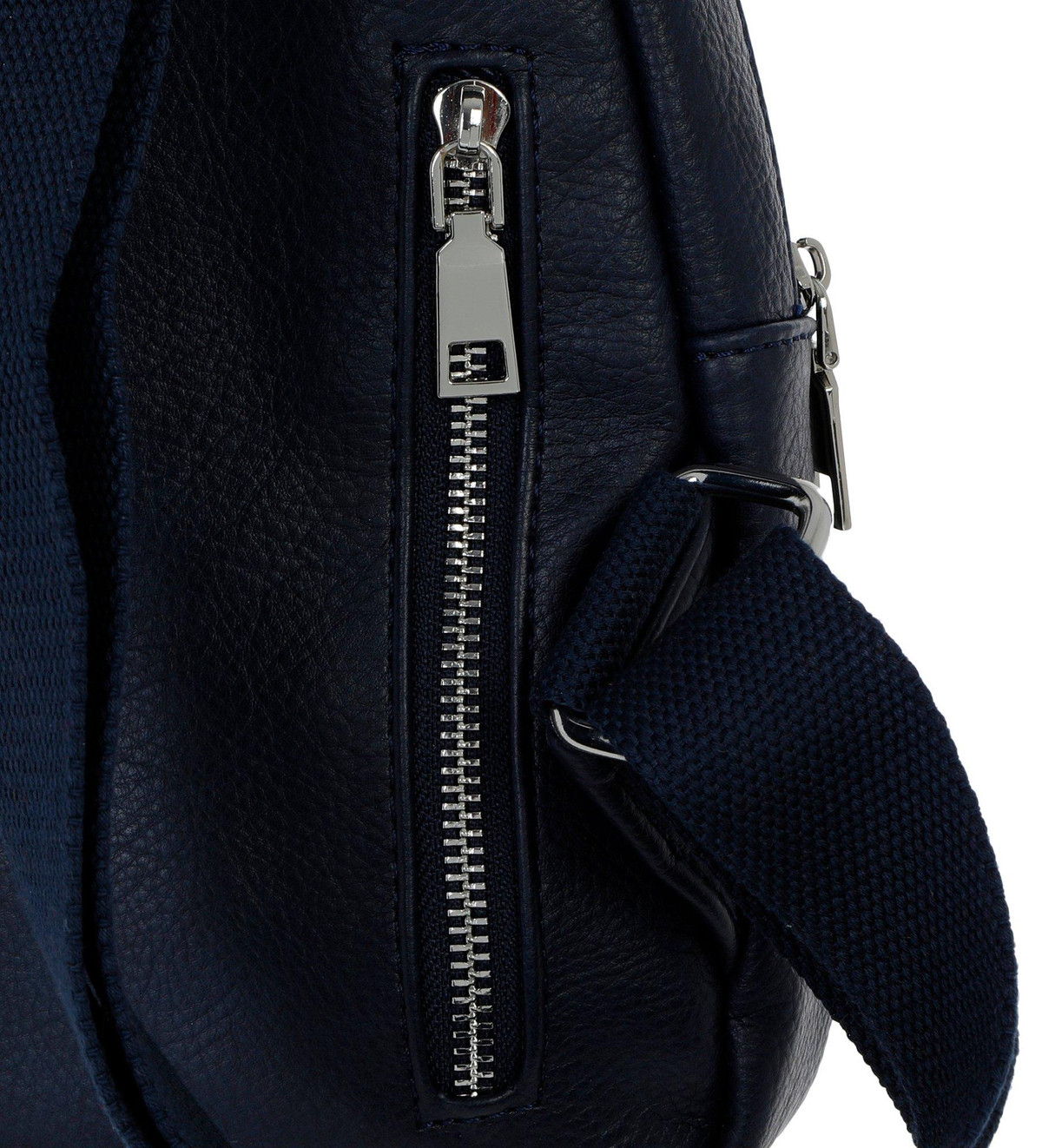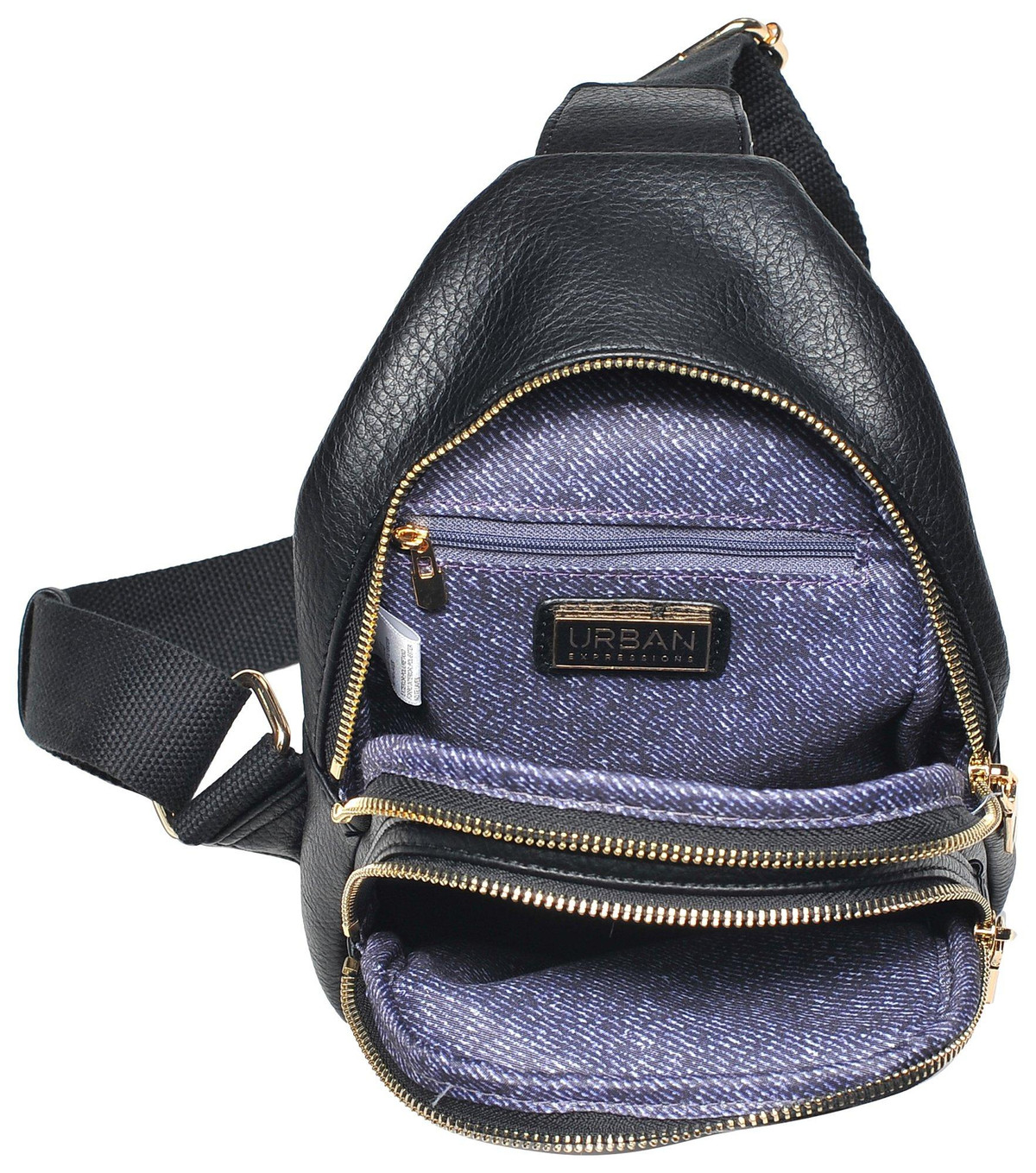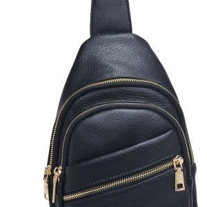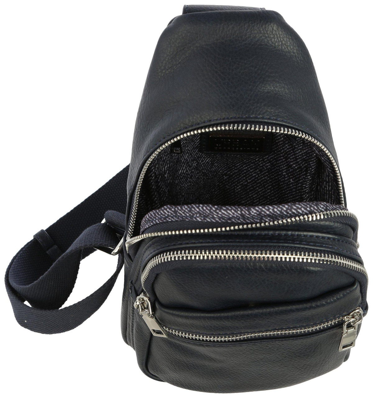 This Zephyr Sling Bag features a solid color design on a denim fabrication, a woven adjustable strap, a rear vertical zip pocket, one each slip and zipper pocket on a front pouch zip pocket, and a zip-around top closure. The lined interior contains 1 zipper pocket. Measures approximately 7 in. L x 2.5 in. W x 11.5 in. H. Strap measures approximately 22-39 inches.
