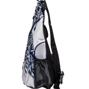 This Zephyr Sling Bag features a solid color design on a denim fabrication, a woven adjustable strap, a rear vertical zip pocket, one each slip and zipper pocket on a front pouch zip pocket, and a zip-around top closure. The lined interior contains 1 zipper pocket. Measures approximately 7 in. L x 2.5 in. W x 11.5 in. H. Strap measures approximately 22-39 inches.