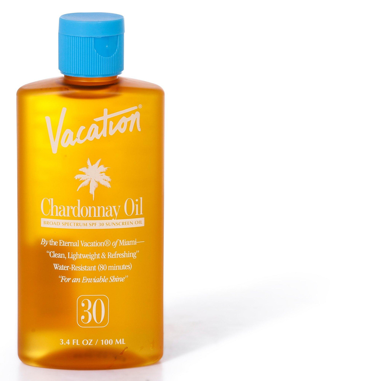 Vacation Chardonnay Oil SPF 30 is a luxurious sunscreen oil crafted from chardonnay grapeseed oil. It offers broad spectrum protection while delivering a subtle, radiant shine. Lightweight and water resistant for up to 80 minutes, this clean formula is transparent on all skin tones and enriched with nourishing oils and vitamin E