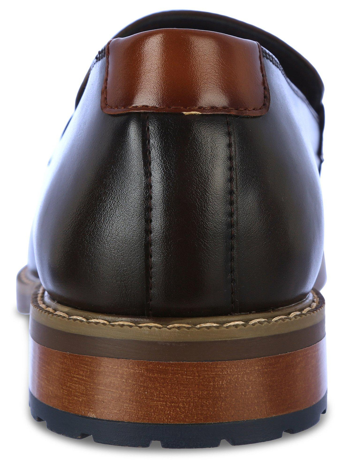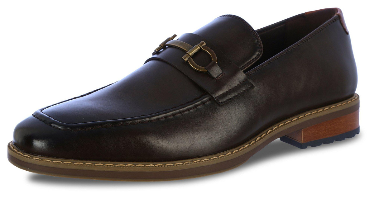 Dress up your outfits with these stylish slip-on dress shoes! They feature metal accents, a lifted heel, and comfortable footbed.