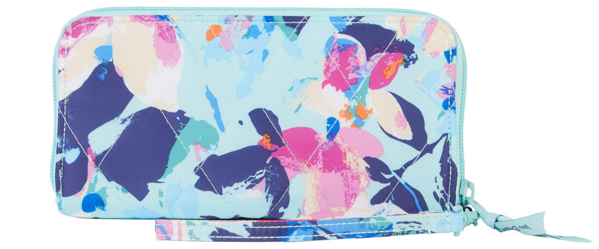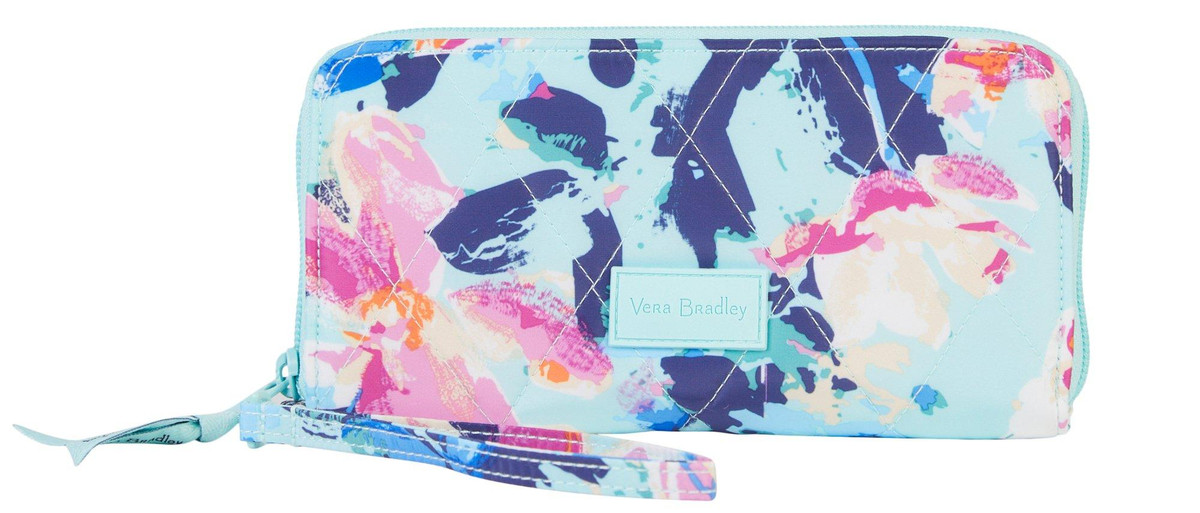 There’s plenty of room for cash, coins, and cards all in a slim silhouette. This wristlet will be your new favorite! Details: Ultralight is lightweight, water-repellent polyester. Provides RFID protection for credit and debit cards. Interior features eight RFID-protected card slip pockets, 2 bill slip pockets, ID window and a zip coin pocket. Measures 7.75 in x 4 in.