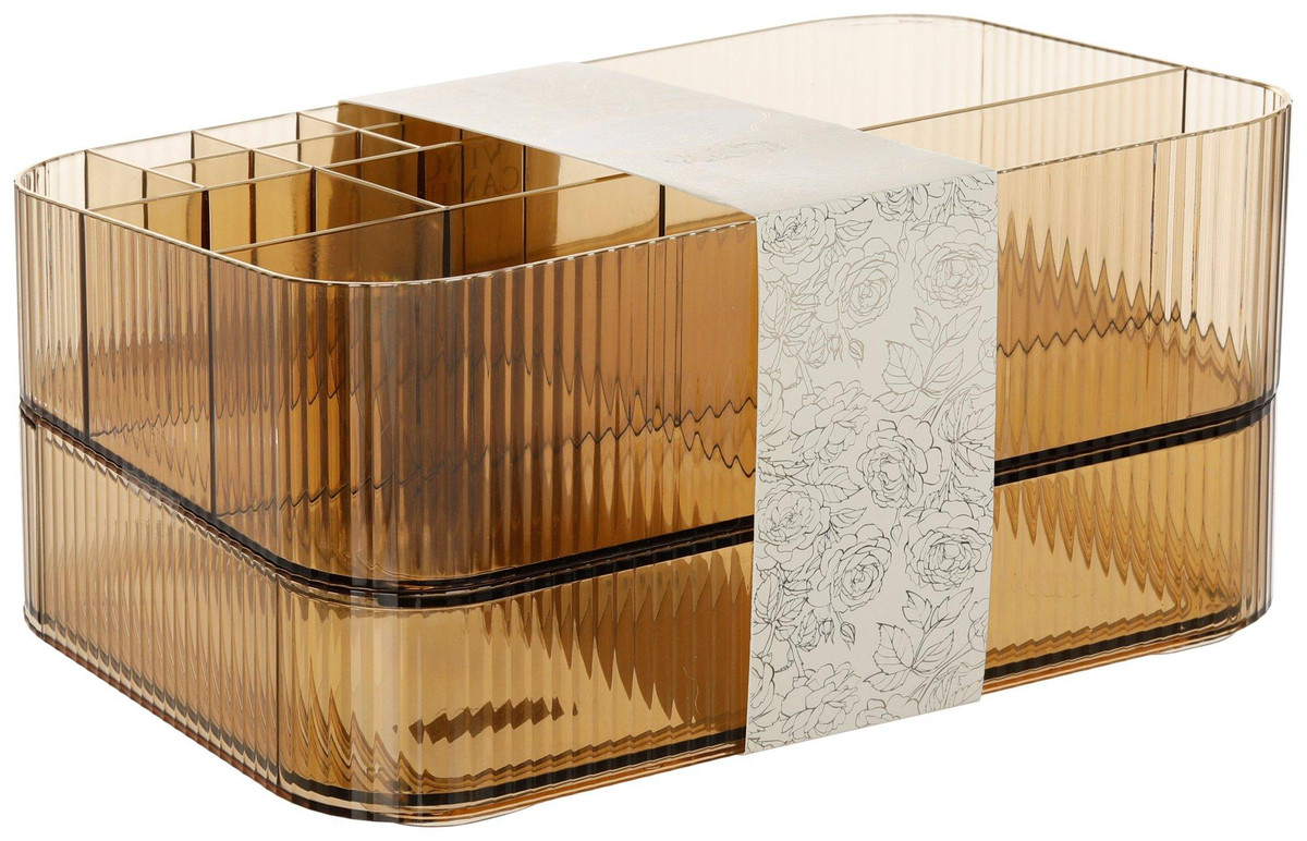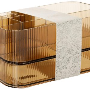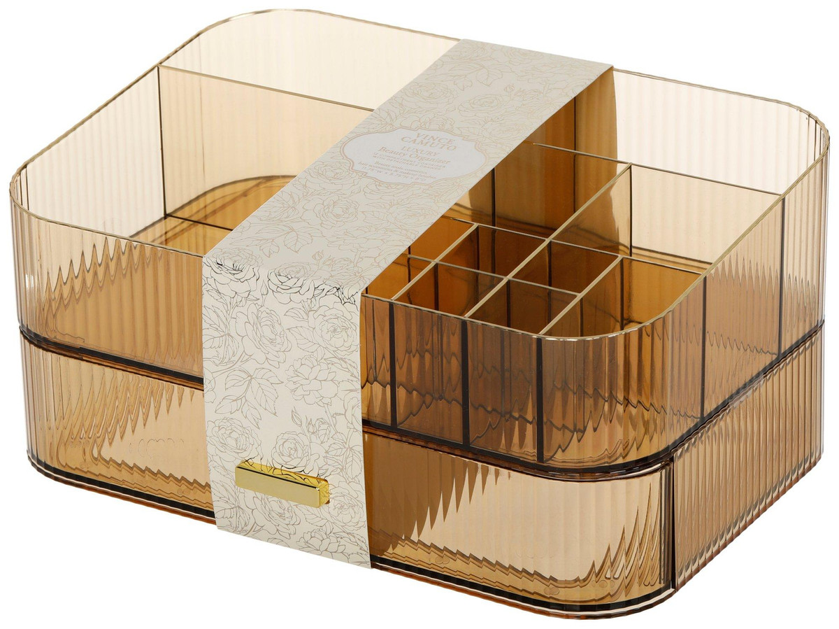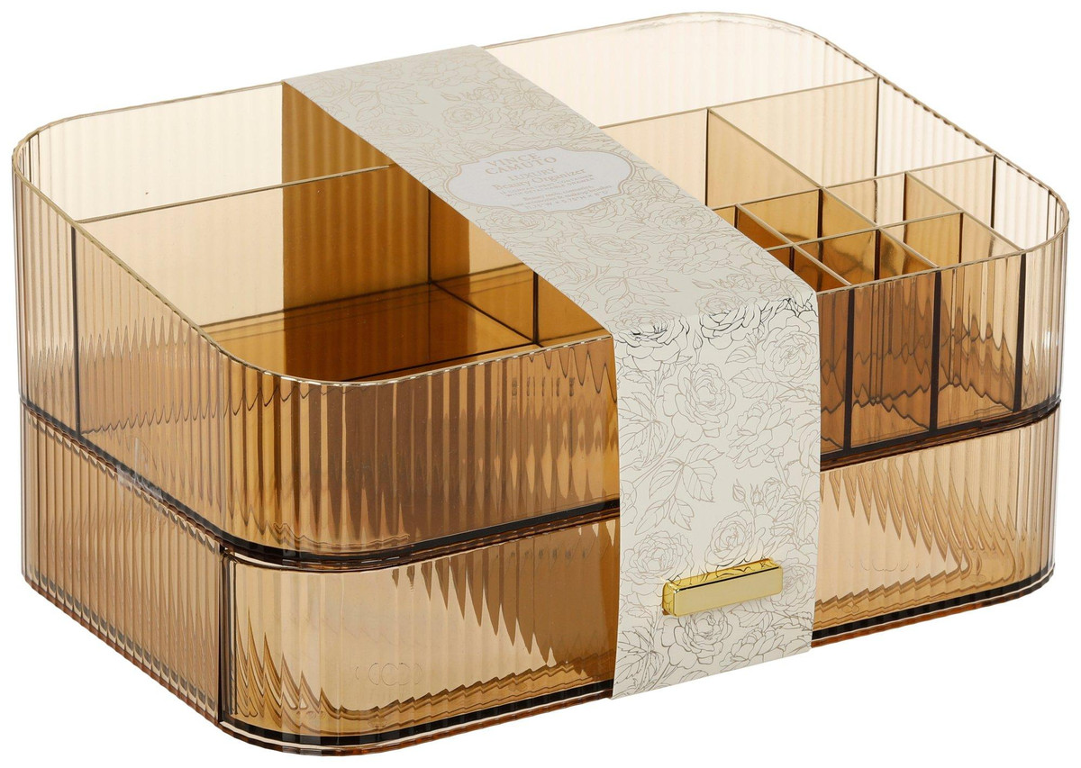 Keep your beauty essentials organized with this 2 Pc Luxury Beauty Organizer. Featuring a 12-compartment top and a detachable drawer, its perfect for cosmetics, brushes, tools, and accessories. Sleek and functional, it measures 11.75 in x 8 in x 5.75 in to fit any vanity or countertop.