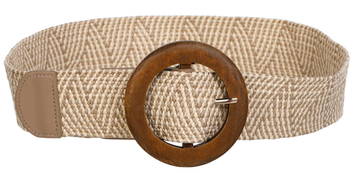 stretch belt features a woven raffia band and a bold wooden buckle that adds natural charm. Its flexible fit and earthy texture make it a standout accessory for dresses or tunics. Stylish yet relaxed, this belt is a perfect gift for someone who loves fashion with a touch of organic elegance.