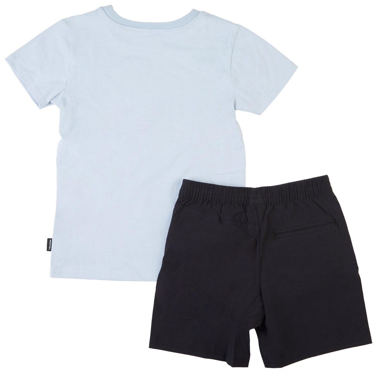The Little Boys 2 Piece Shorts Set includes a fun short sleeve graphic shirt paired with easy pull on shorts. This casual combo is perfect for active days, offering comfort and playful style for everyday adventures.