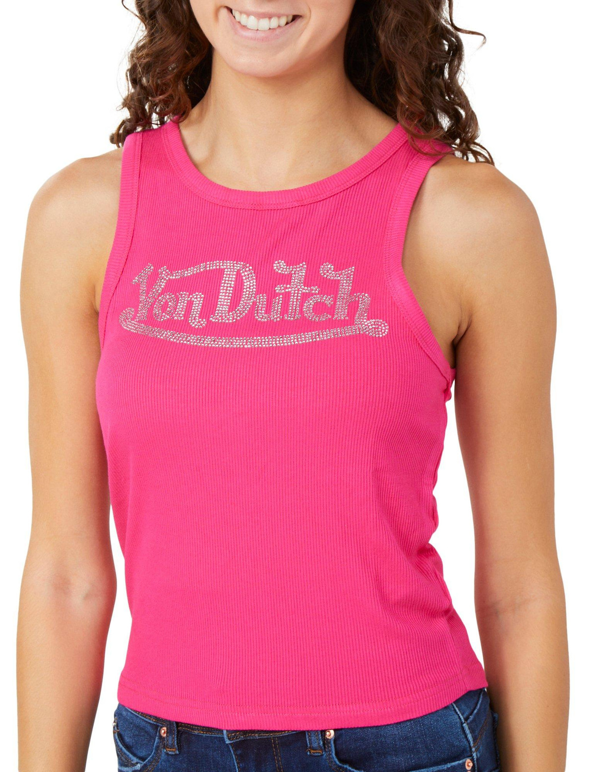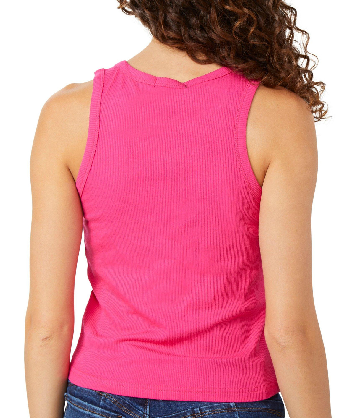 Shine bright in the Juniors Rhinestone Ribbed Tank Top. Featuring a solid ribbed texture, crew neckline, and sparkling rhinestone logo script, this tank adds a touch of glam to your everyday essentials. Fabrication 95% rayon, 5% spandex