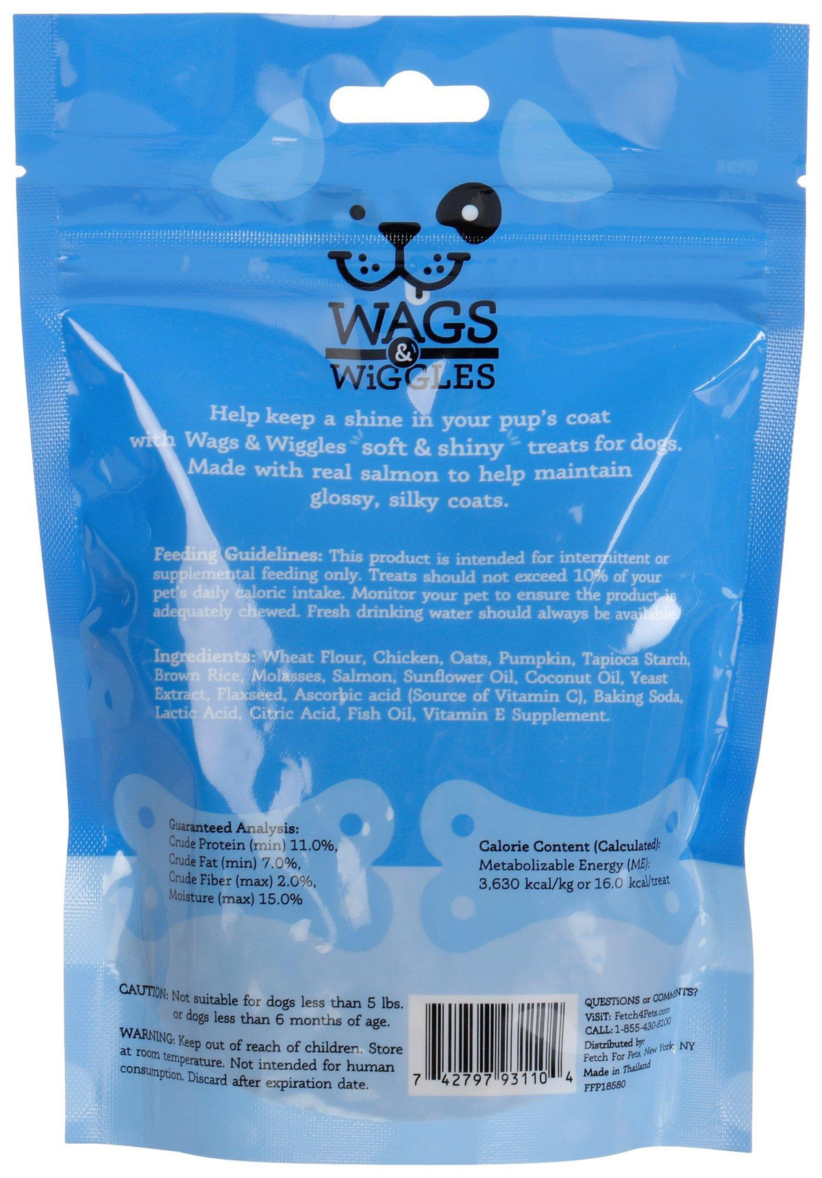 Wags and Wiggles Soft Shiney treats are made with omegas to support skin and coat health. These flavorful bites promote a soft shiny look your dog will love. Not suitable for dogs under 6 months or under 5lbs.
