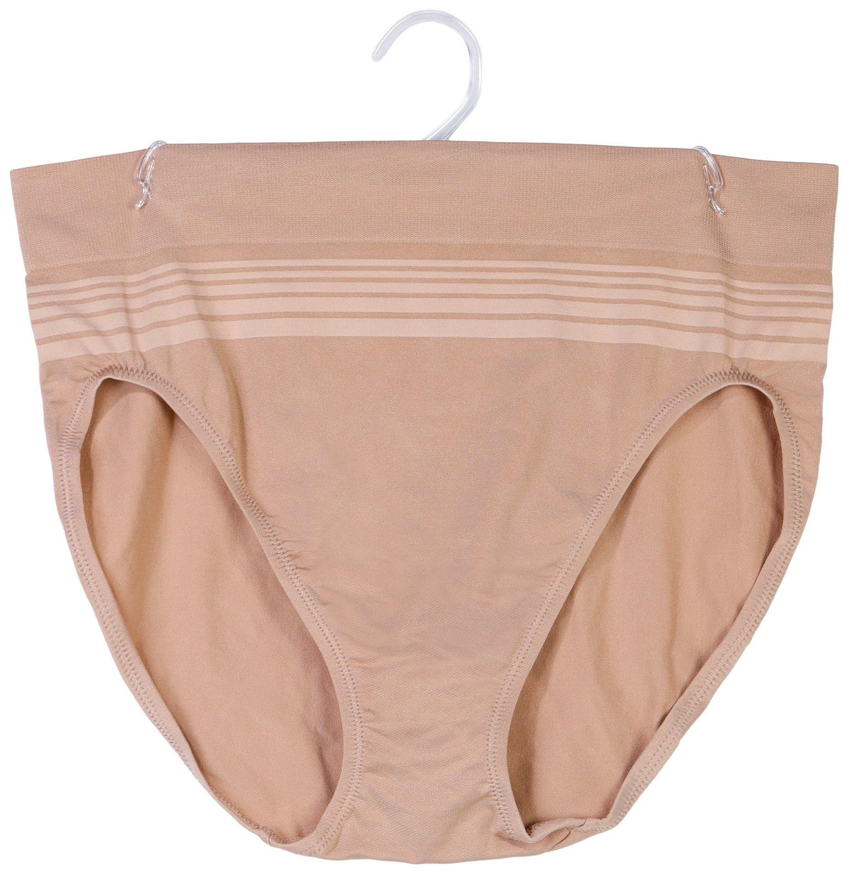 These No Pinching No Problems Hi-Cut Panties feature a stripe design on a stretch microfiber fabrication, a wide dig-free comfort waistband, and a seamless style for added comfort. These mid-waist panties fall on your natural waistline for a great fit. Style RT5501P.