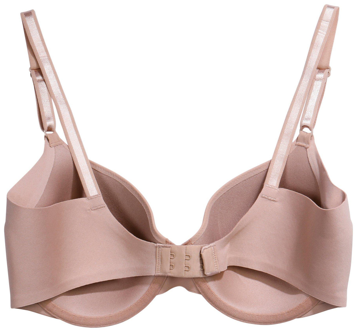 The No Side Effects bra features flexible foam cups for the perfect fit, extra side coverage eliminates underarm bulge, elastic free sides & back for a sleek look under clothes, front adjustable straps for added convenience, and a 3-column 2-row hook-&-eye closure.