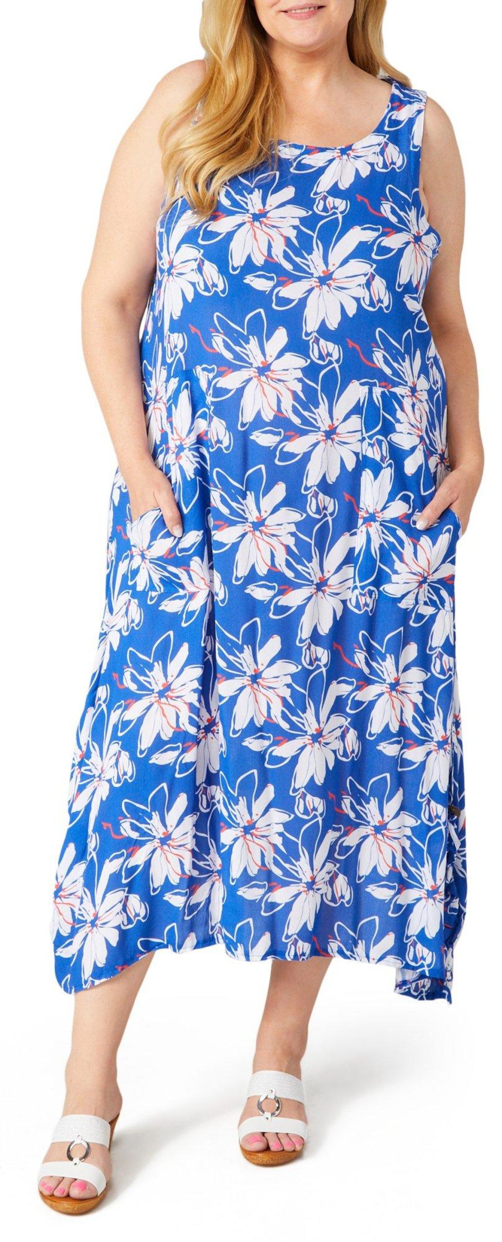 Introducing our Women’s Sleeveless Floral Maxi Dress, crafted from 100% rayon for a soft and breathable feel. This elegant dress features a stylish floral design and a flattering round neckline. With a 47-inch length, it offers a sophisticated silhouette perfect for any occasion. Embrace the season with this chic and versatile addition to your wardrobe!