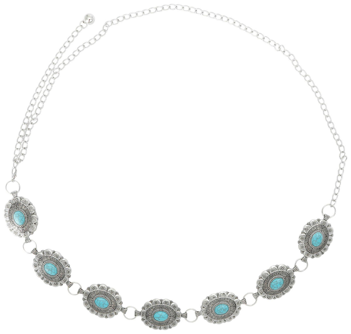 Stylish and versatile Silver Western Chain Belt. Perfect for cinching dresses or adding edge to jeansyour go-to accessory for a polished look.