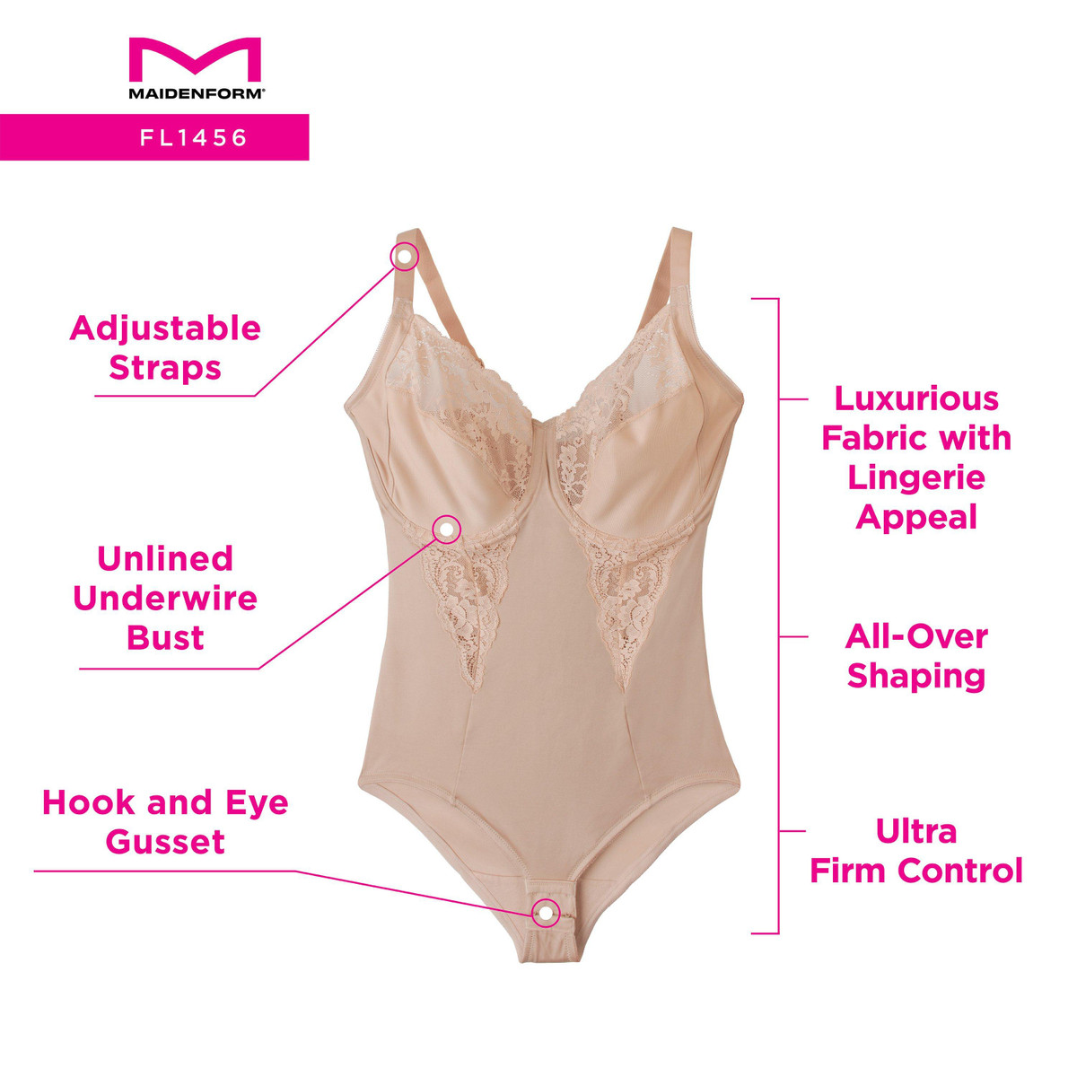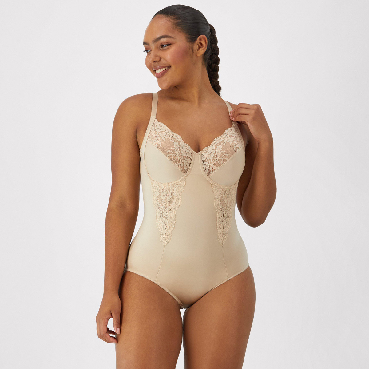 Our body briefer has a power mesh lining that is so comfortable, you might forget you have it on! Ultra-firm panels target your tummy and hips while the built-up back smooths and holds for all-over sculpting. An unlined, built-in underwire bra with three-section cups is trimmed in lace, so pretty you might let it peek out. Additional features include hook-and-eye-closure, cotton-lined gusset, adjustable lingerie straps, full back coverage and comfortable moisture-wicking Cool Comfort® fabric.