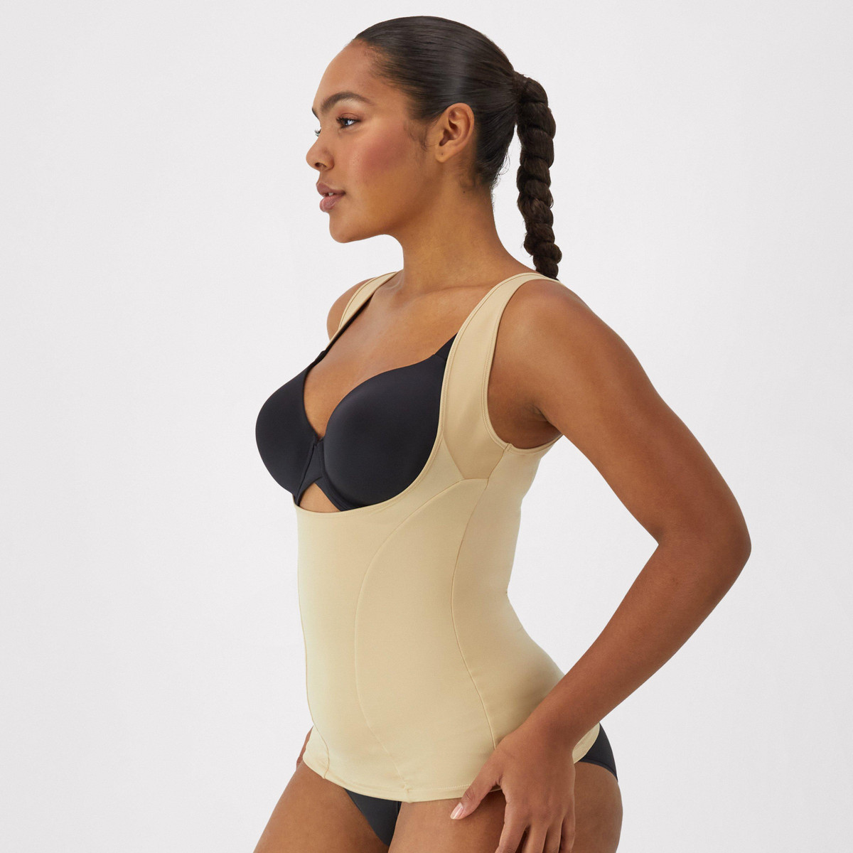 Look your best and feel confident, with ultra-firm control, all-over smoothing torsette, comfortable enough for everyday wear. This open-bust shapewear cami lets you wear your favorite bra for the support you need with the slimming you want to feel sleek and sexy on any occasion. Cool Comfort® fabric features moisture-wicking technology to help your skin feel cool and comfortable for hours on end. This smoothing shapewear will have you ready for whatever the day or evening may bring.